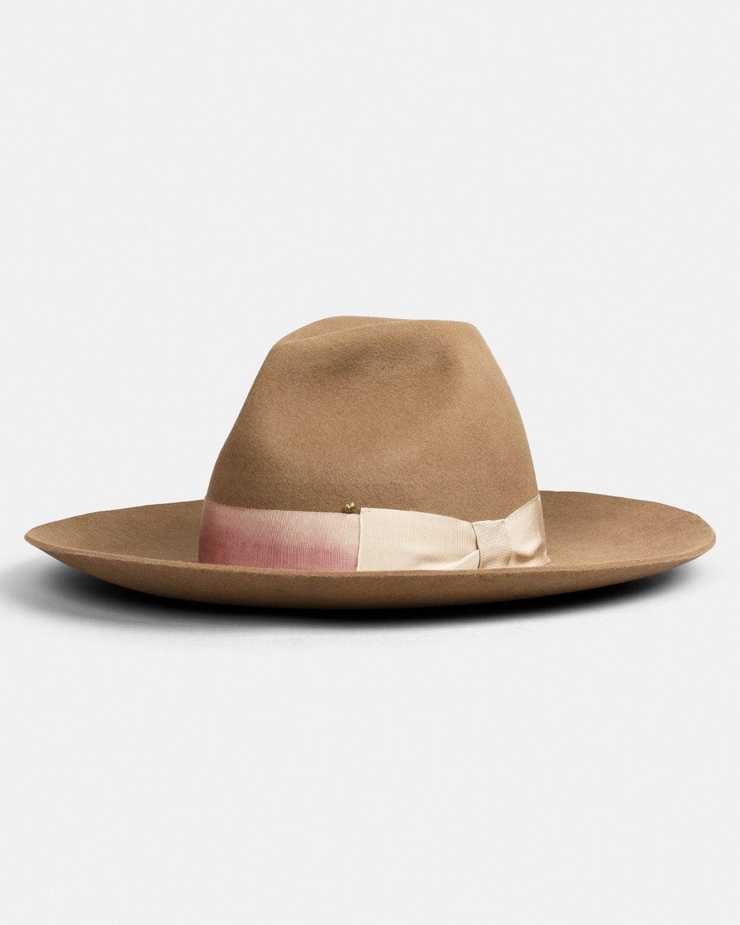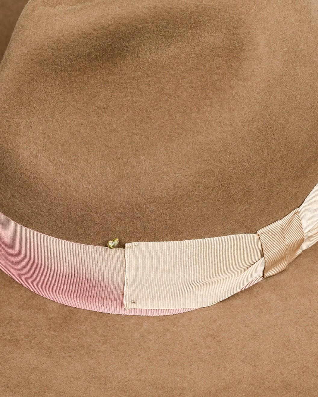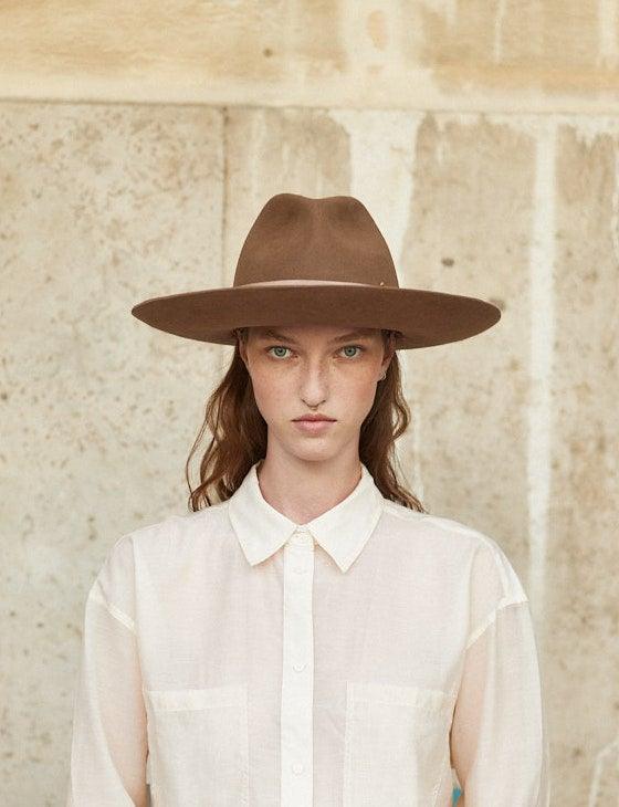 The material used is rabbit fur felt which has a soft and pleasant touch. Strong and defined crown, surrounded by a large brim.