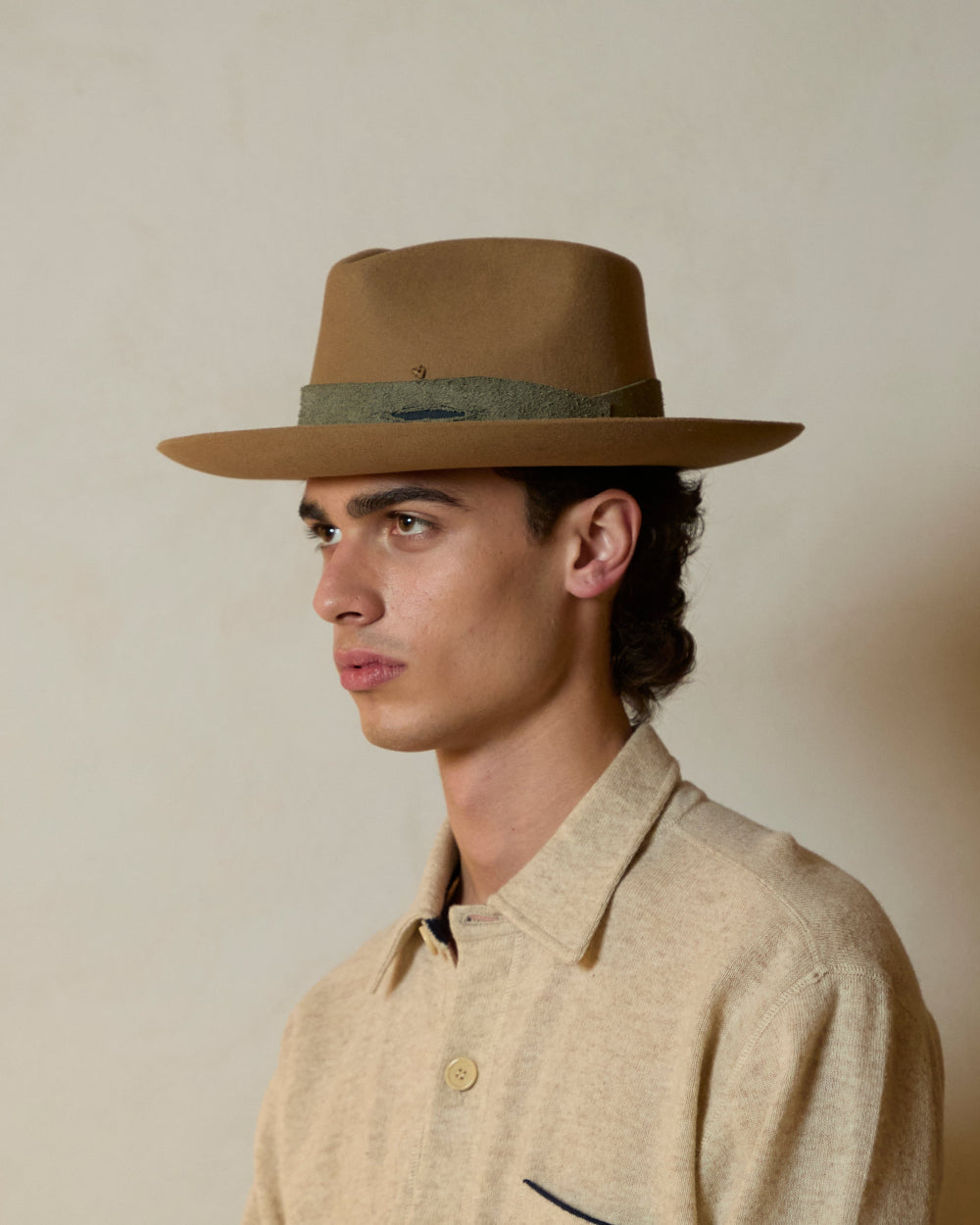Regular price €225Our masterpiece hat seamlessly blends timeless elegance with modern style. The crown, with its strong teardrop silhouette, strikes the perfect balance of proportions. harmonized by a generously sized.