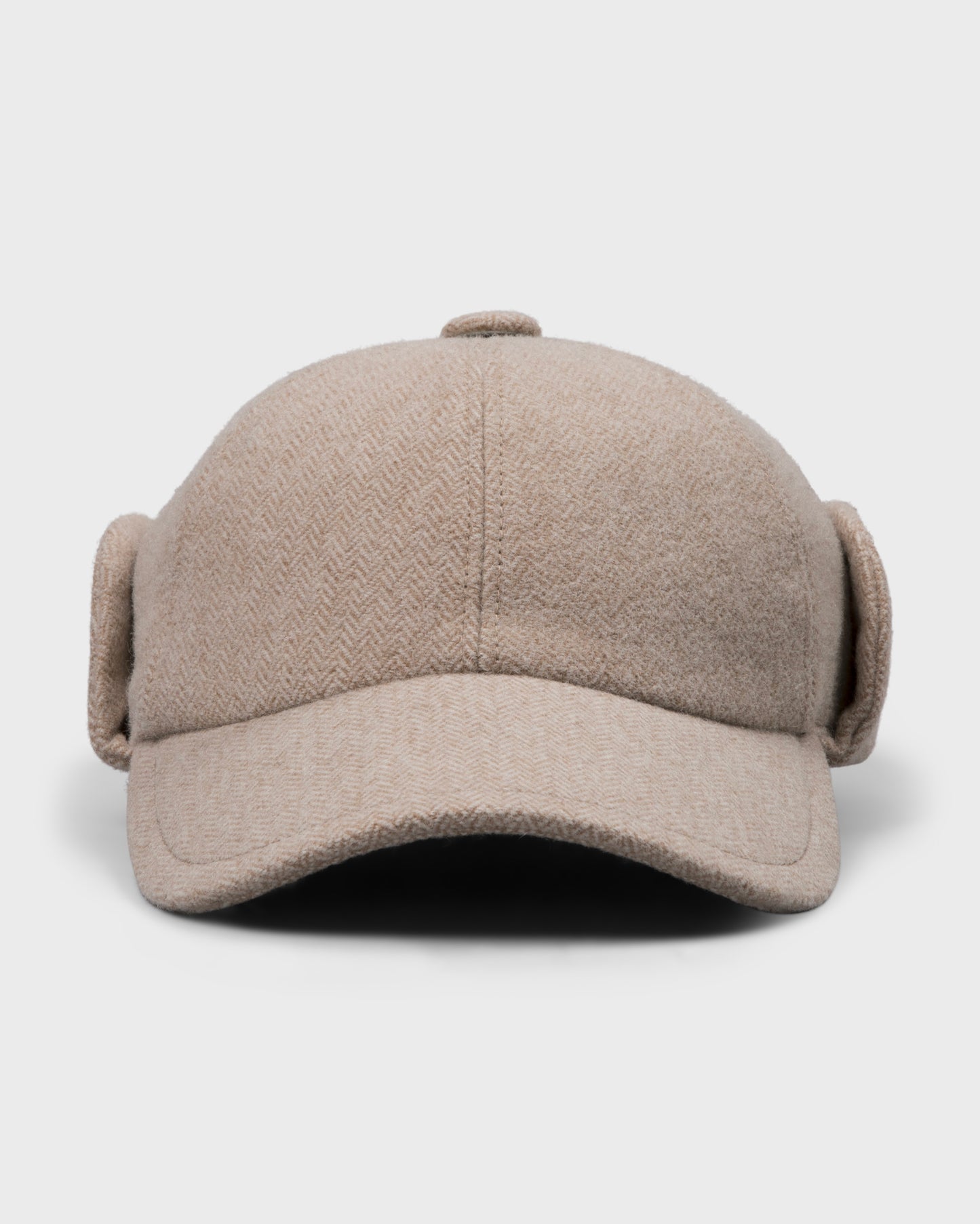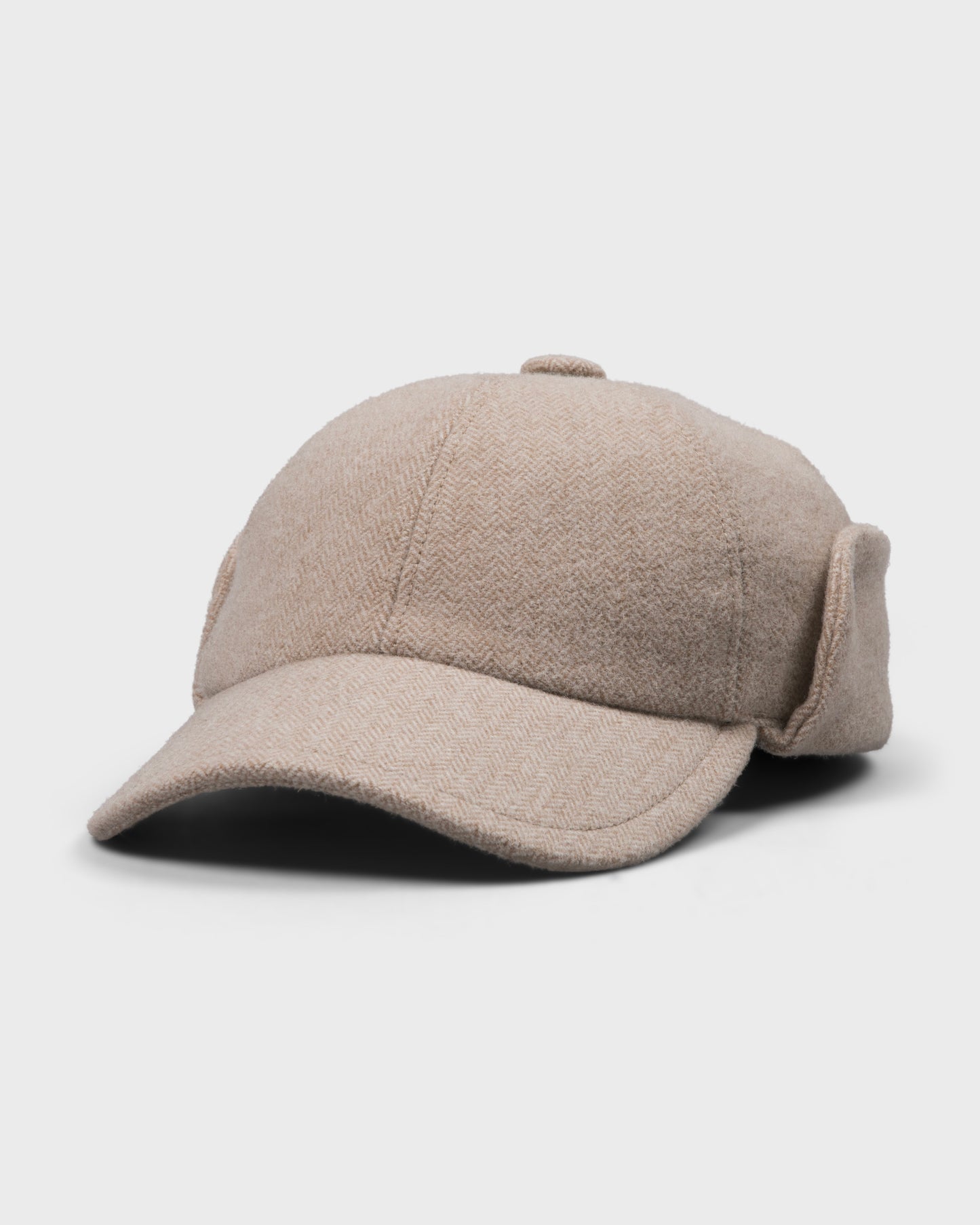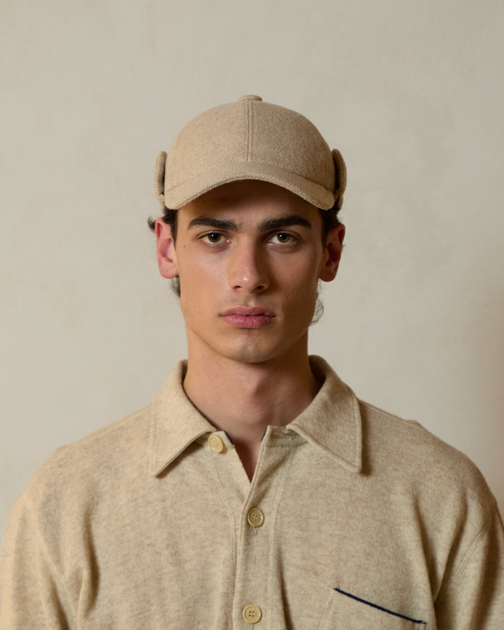 A deep, cold winter-season baseball cap with ear flaps inspired by the '60s, blending sporty style with functional warmth. Crafted from soft insulating wool, it offers comfort and protection during colder days.