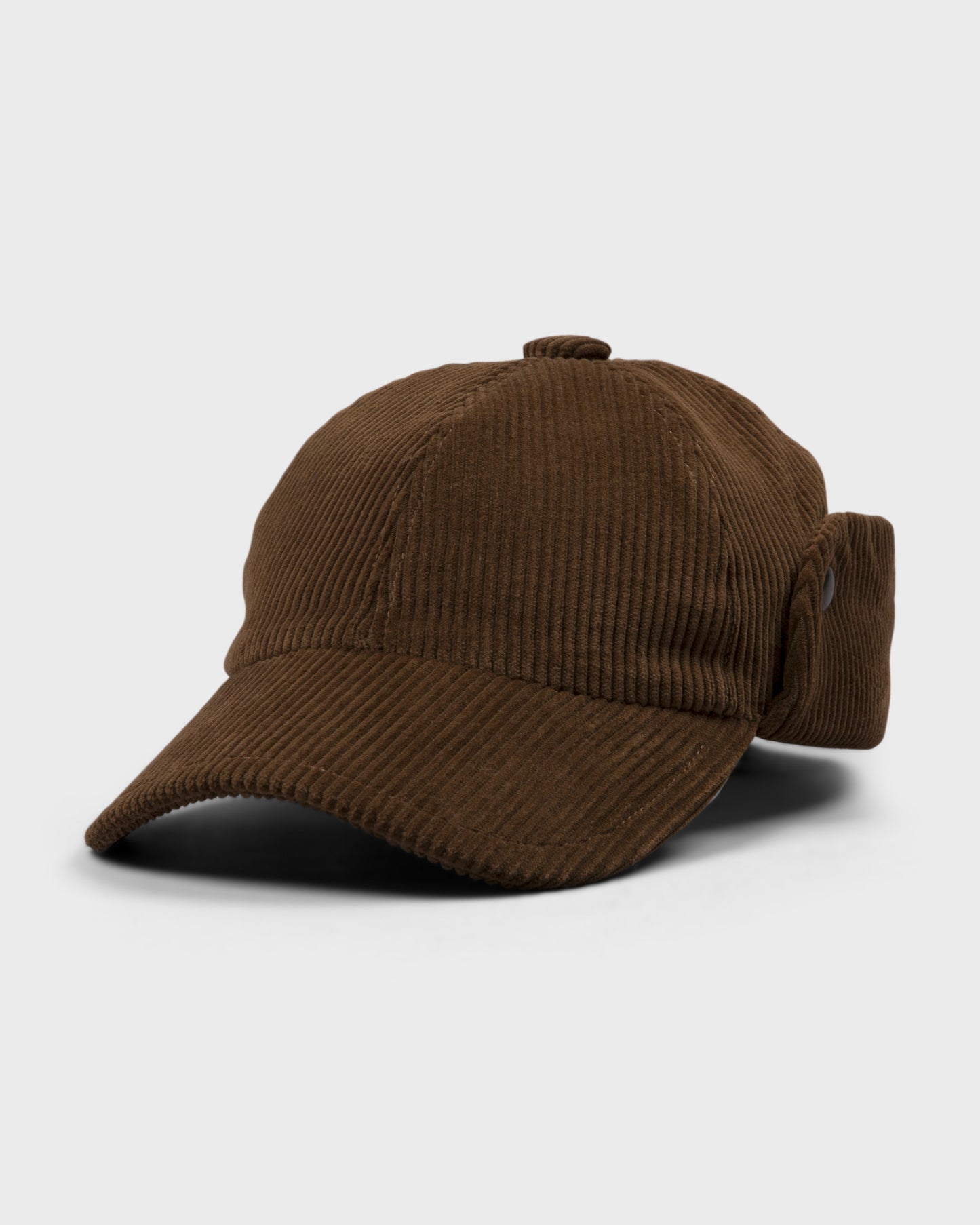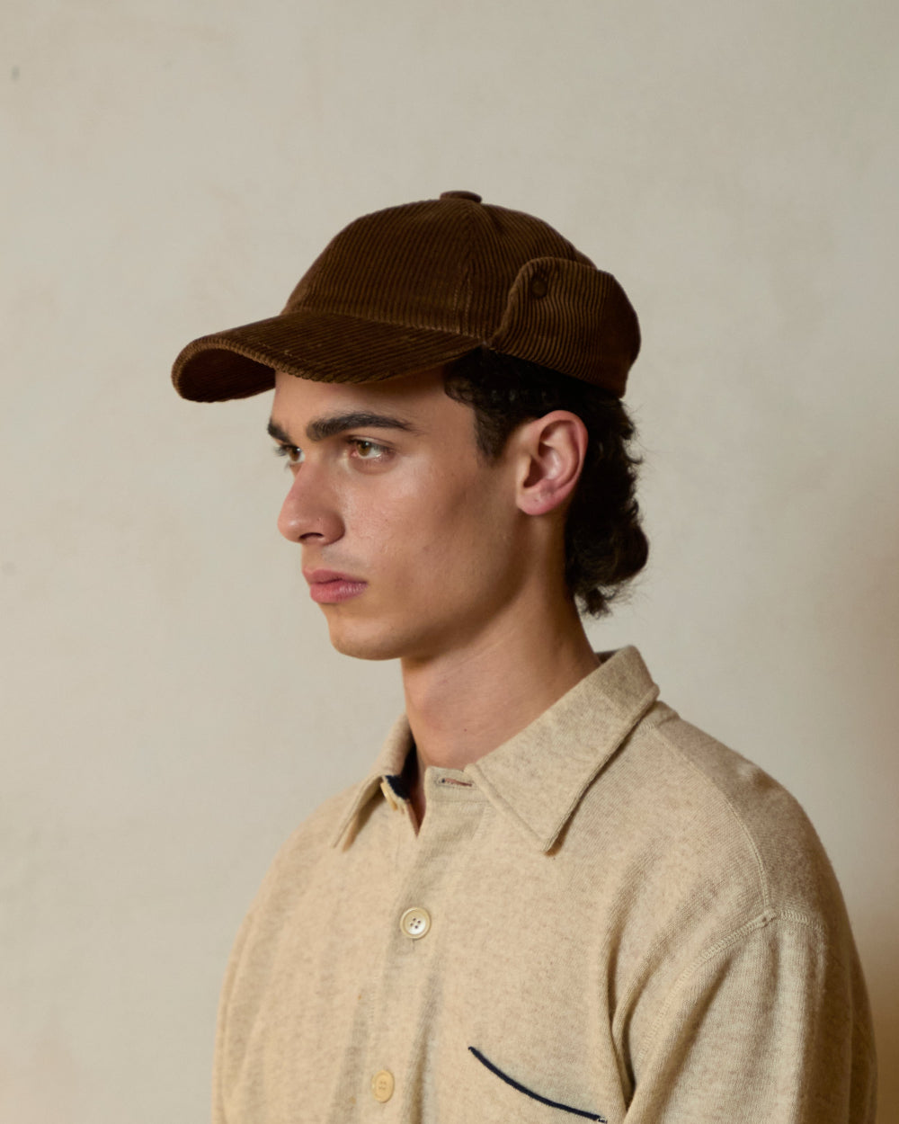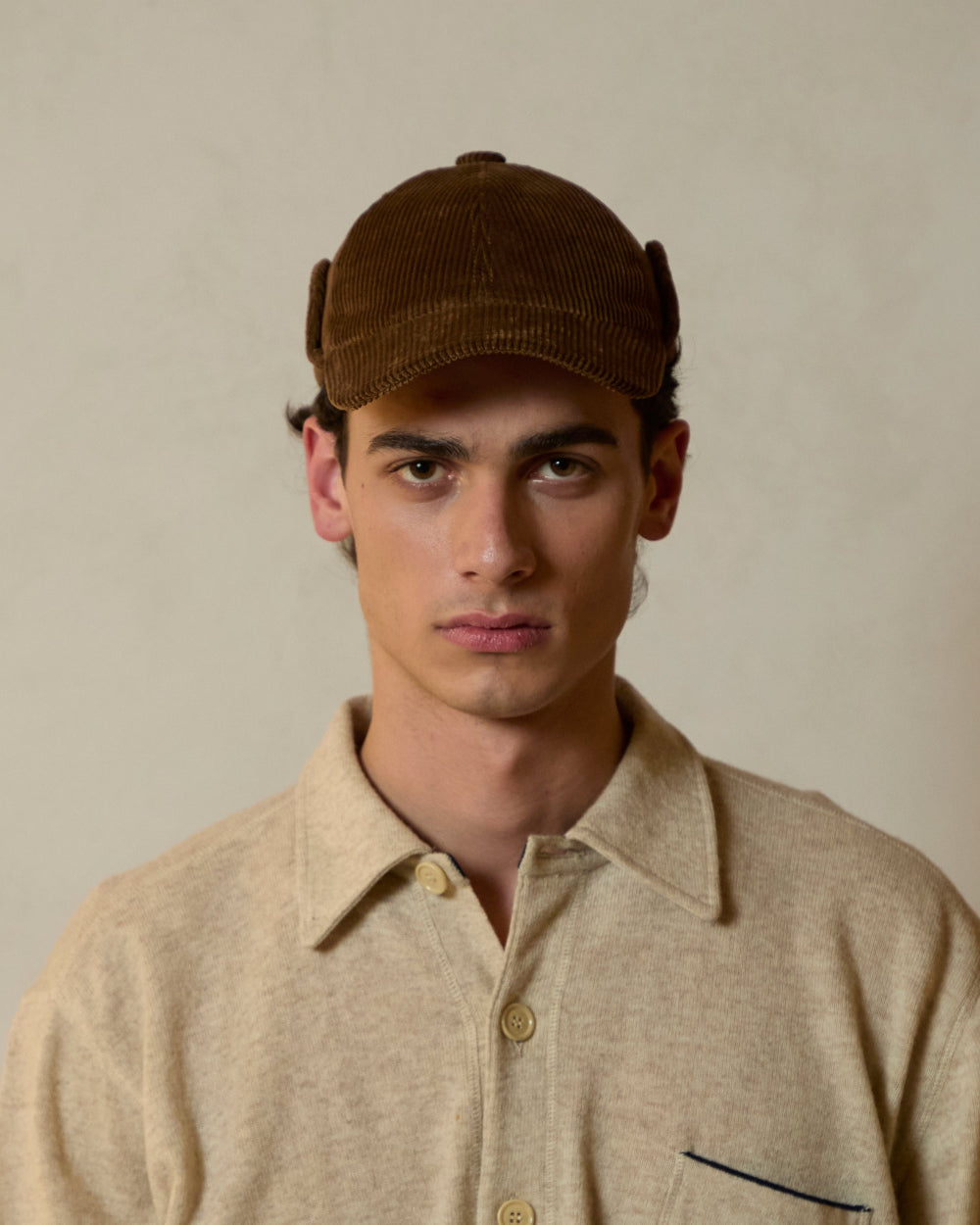 A deep, cold winter-season baseball cap with ear flaps inspired by the '60s, blending sporty style with functional warmth. Crafted from soft insulating wool, it offers comfort and protection during colder days.