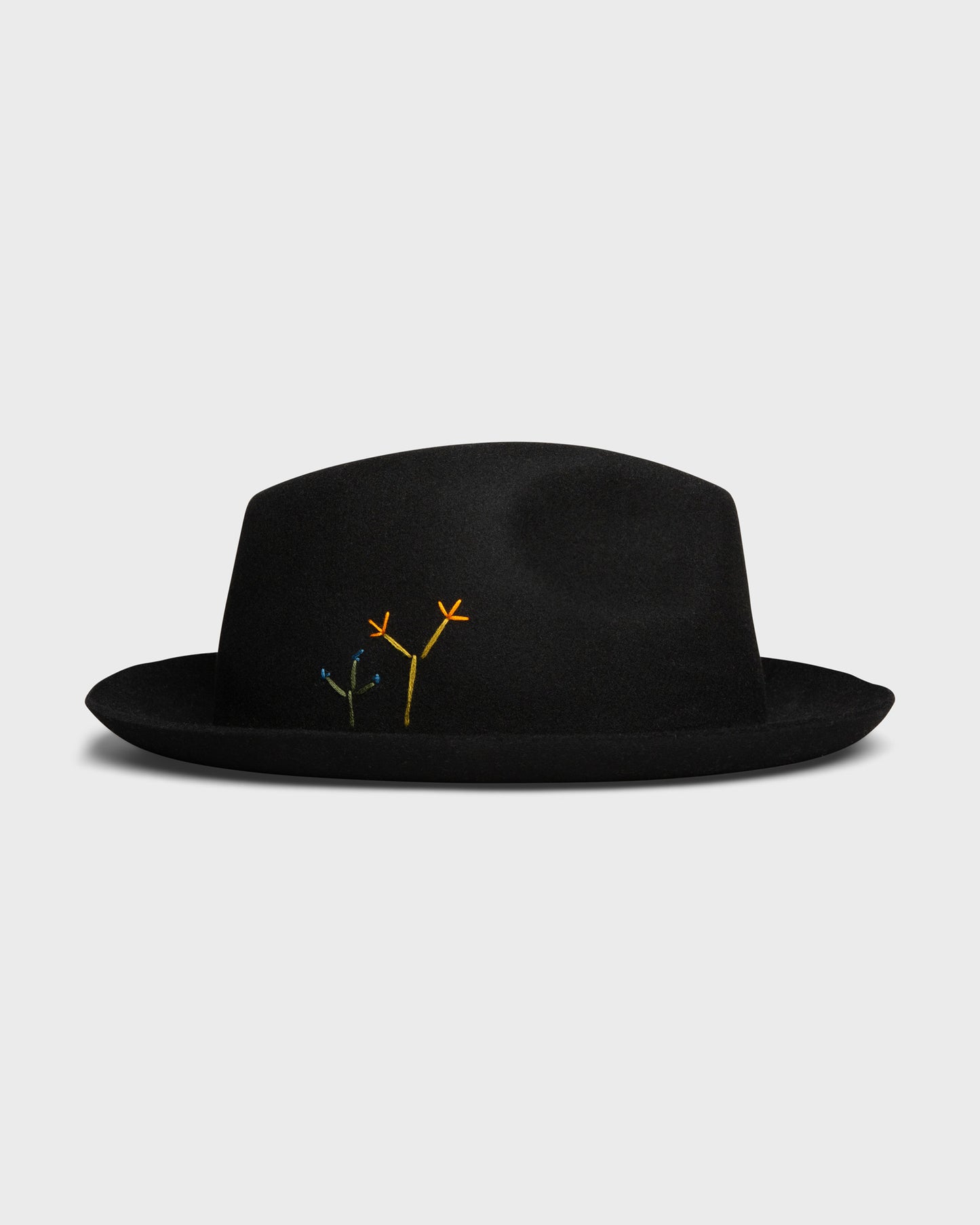 Designed to be crushable and easy to pack, HOBO can be placed in a bag or suitcase and naturally regains its shape once worn. On the left side, a small stitched cactus detail recalls the spirit of the collection, adding a subtle graphic accent without disrupting the hat’s essential design.