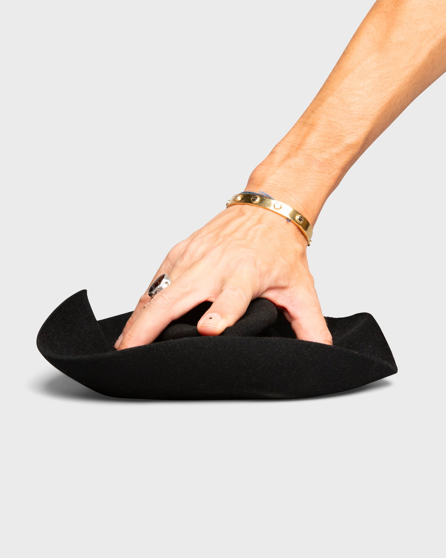 HOBO is our iconic travel hat, designed to move effortlessly with you. Crafted in felt and finished in a soft black color, it features a clean silhouette with a 5 cm brim, striking the perfect balance between practicality and timeless style.