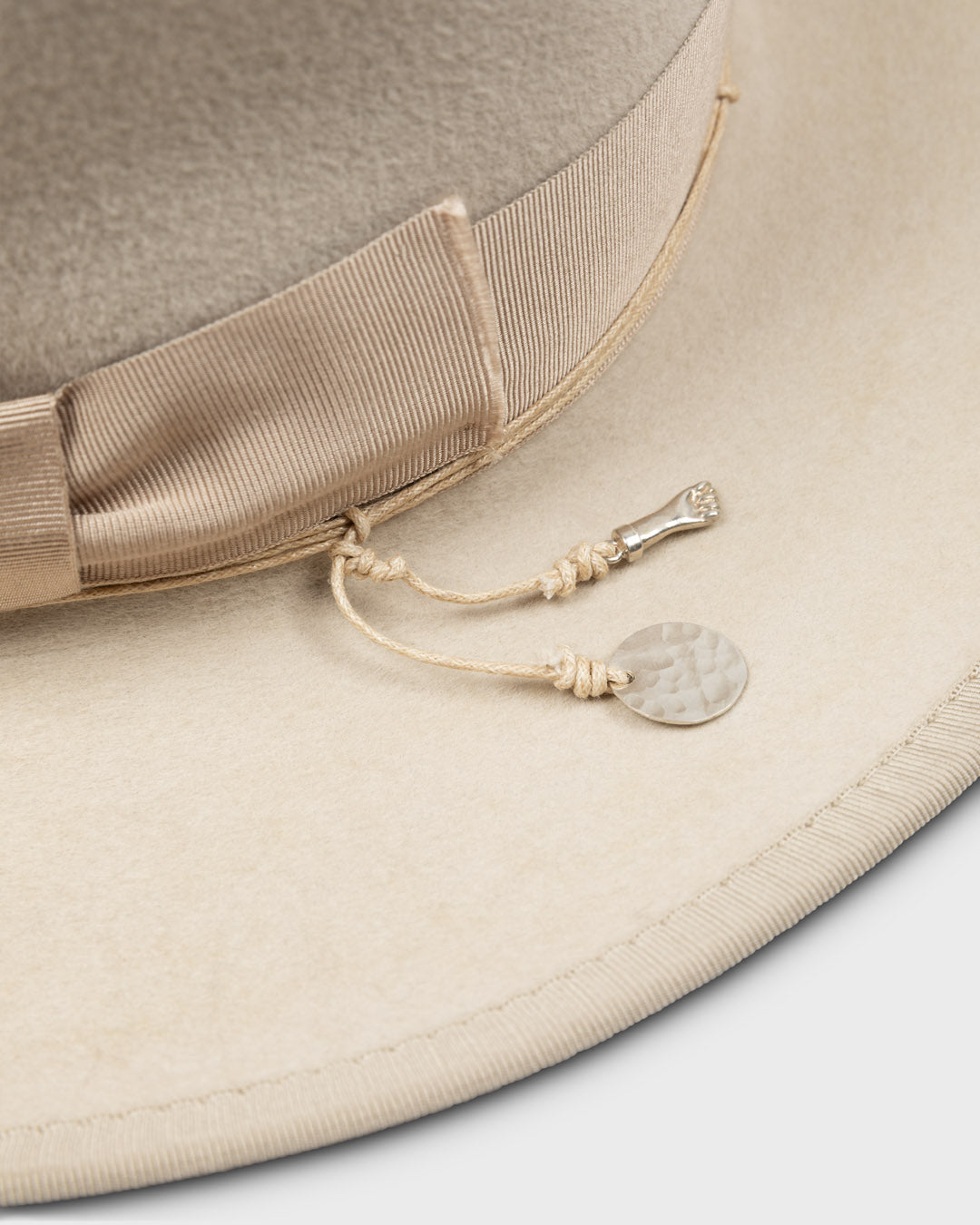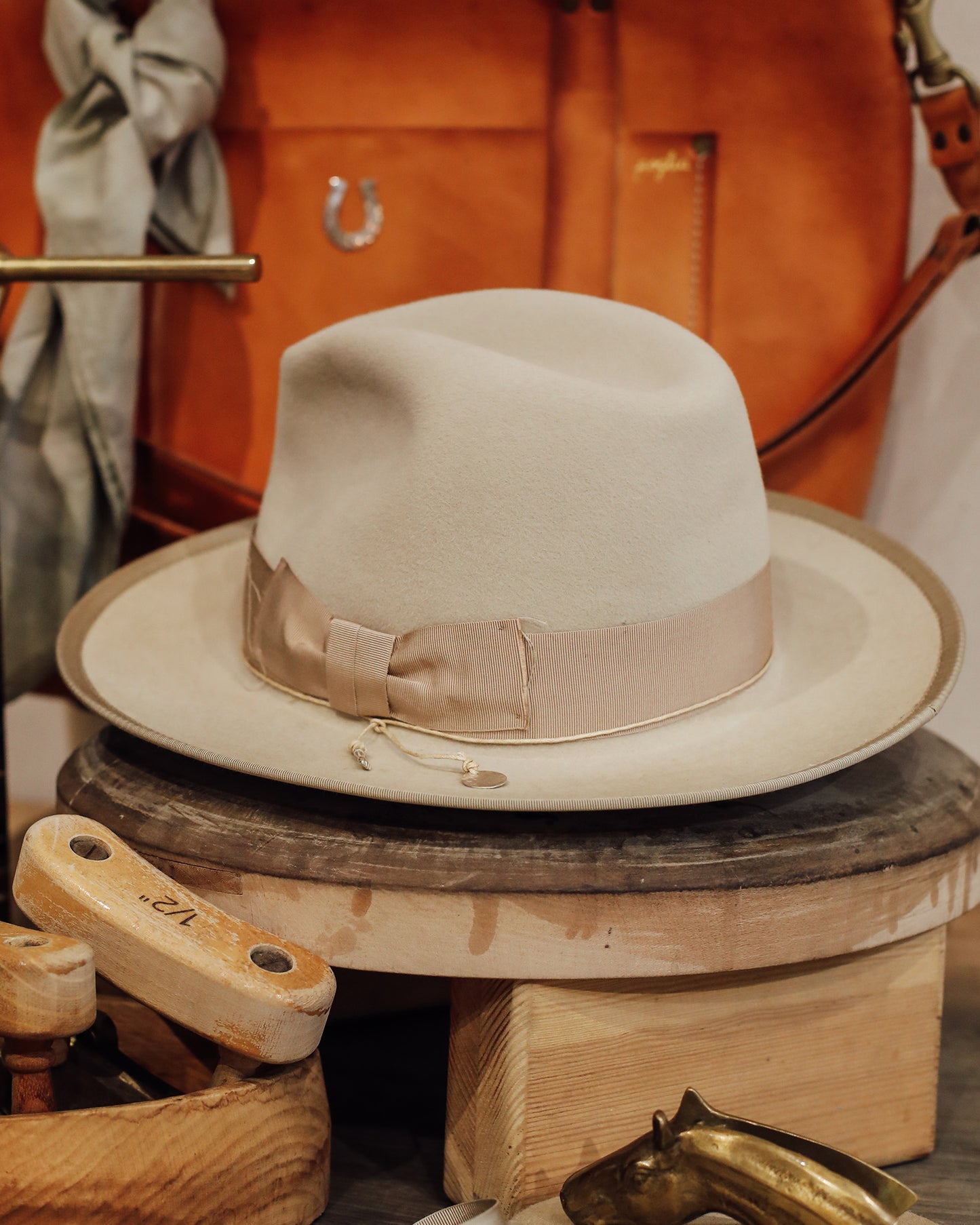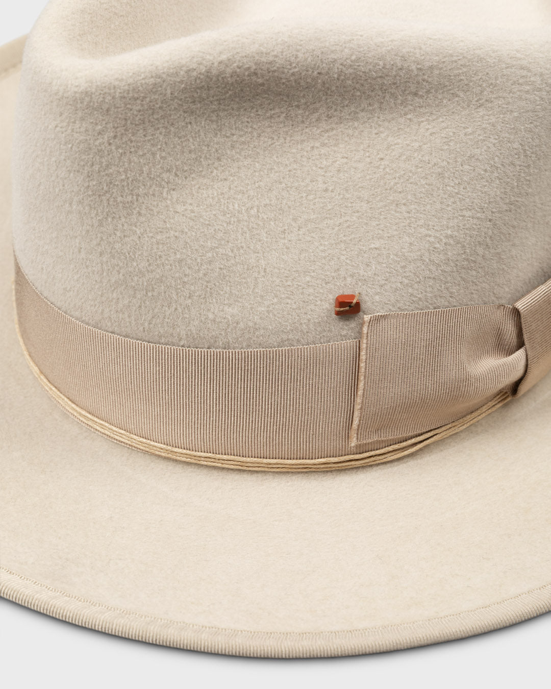 The Grateful hat, designed for this special edition, is a masterpiece of craftsmanship, reimagined with an Argentine touch. Made from premium rabbit felt in a sophisticated silverbelly color, this hat embodies timeless elegance and versatility.