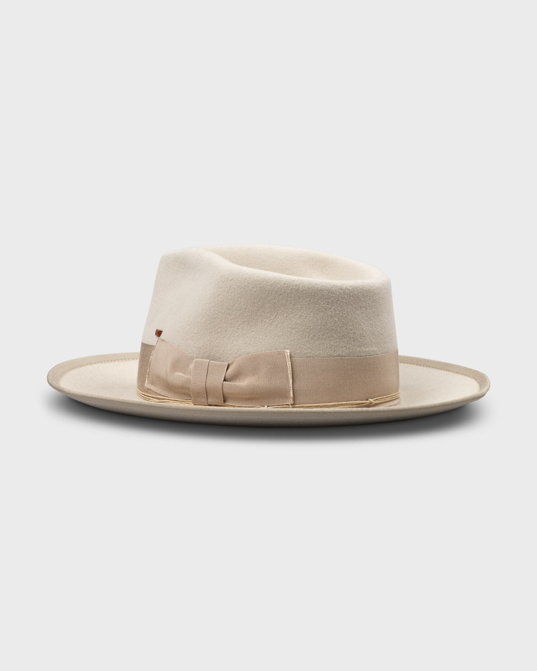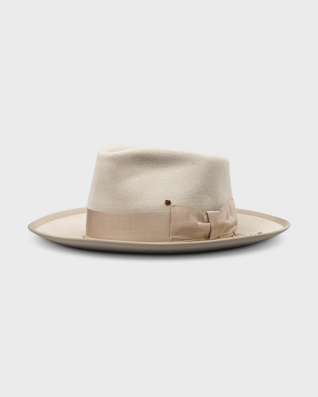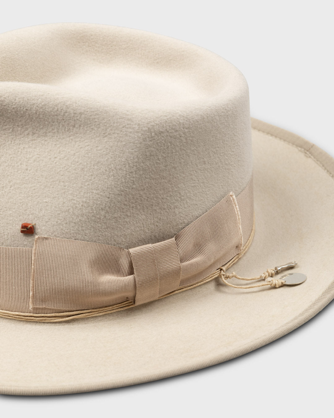 The Grateful hat, designed for this special edition, is a masterpiece of craftsmanship, reimagined with an Argentine touch. Made from premium rabbit felt in a sophisticated silverbelly color, this hat embodies timeless elegance and versatility.