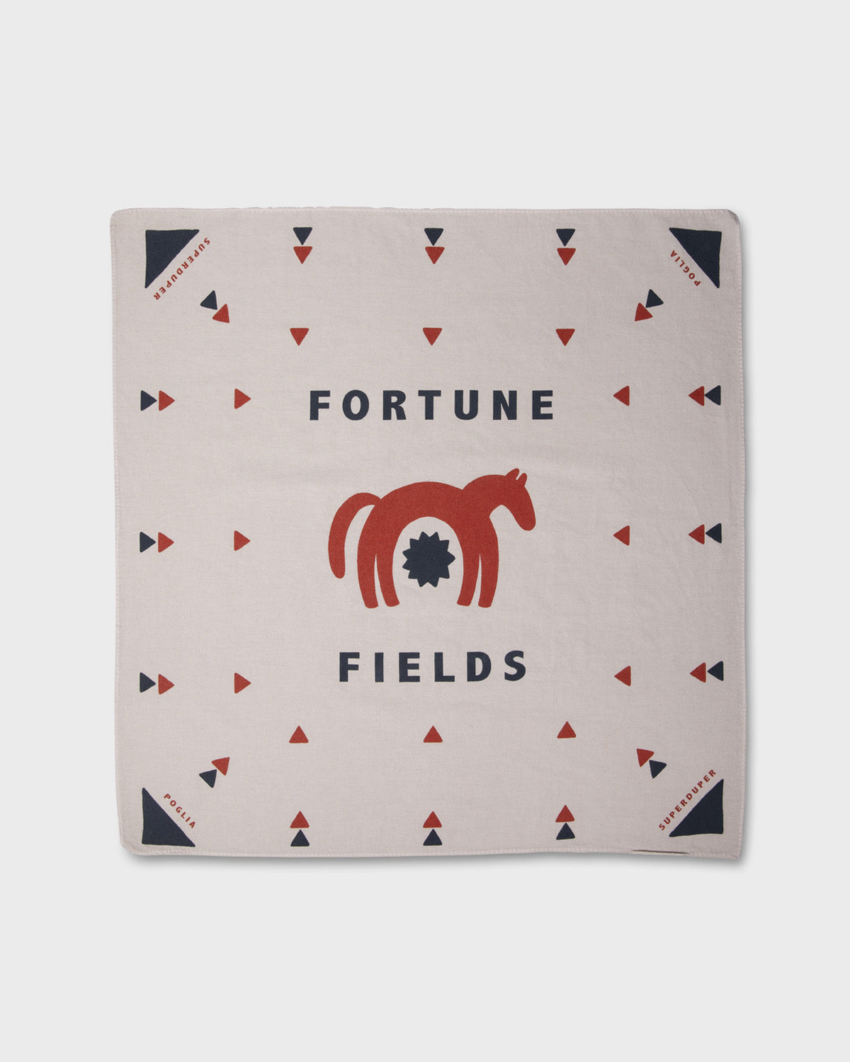 A silk-screen-printed bandana is included with the hat, designed to be worn as a head accessory under the hat or styled separately.