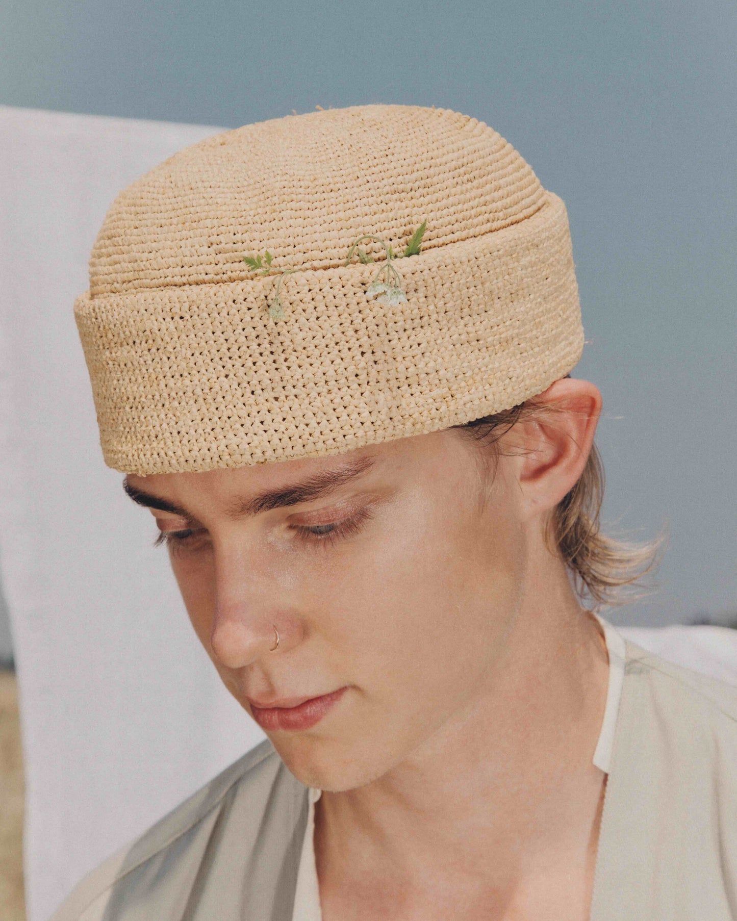 Inspired by the iconic Marinaretto hat, the new Limited Edition of Sailor is woven with carefully sourced super fine Rafia, ensuring a structured design and high quality. Crafted with crochet technique, the shade and appearance of this pocket hat exude overall charm. The natural characteristics of the yarn, combined with expert craftsmanship in the knit, result in a hat that is both airy and practical. The perfect companion for this sunny season.