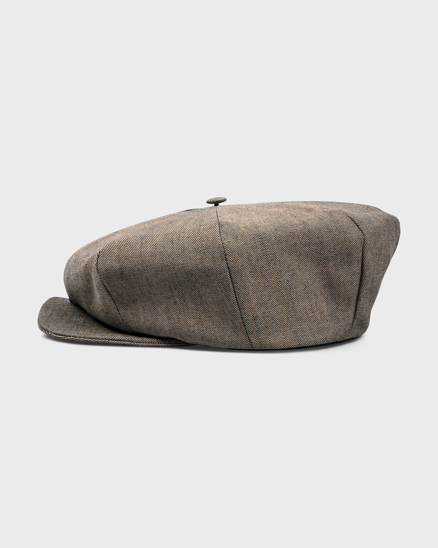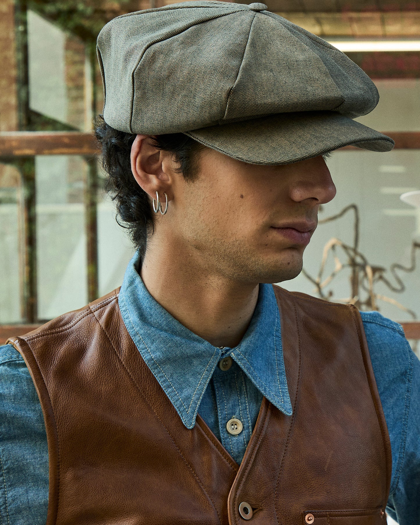 The eight-panel "newsboy" cap takes inspiration from the iconic newspaper sellers of the late 1800s and early 1900s, though it was widely worn by the working class of the time. For this season, Simonon revisits that heritage through the lens of the 1960s subculture — blending classic structure with a contemporary edge.