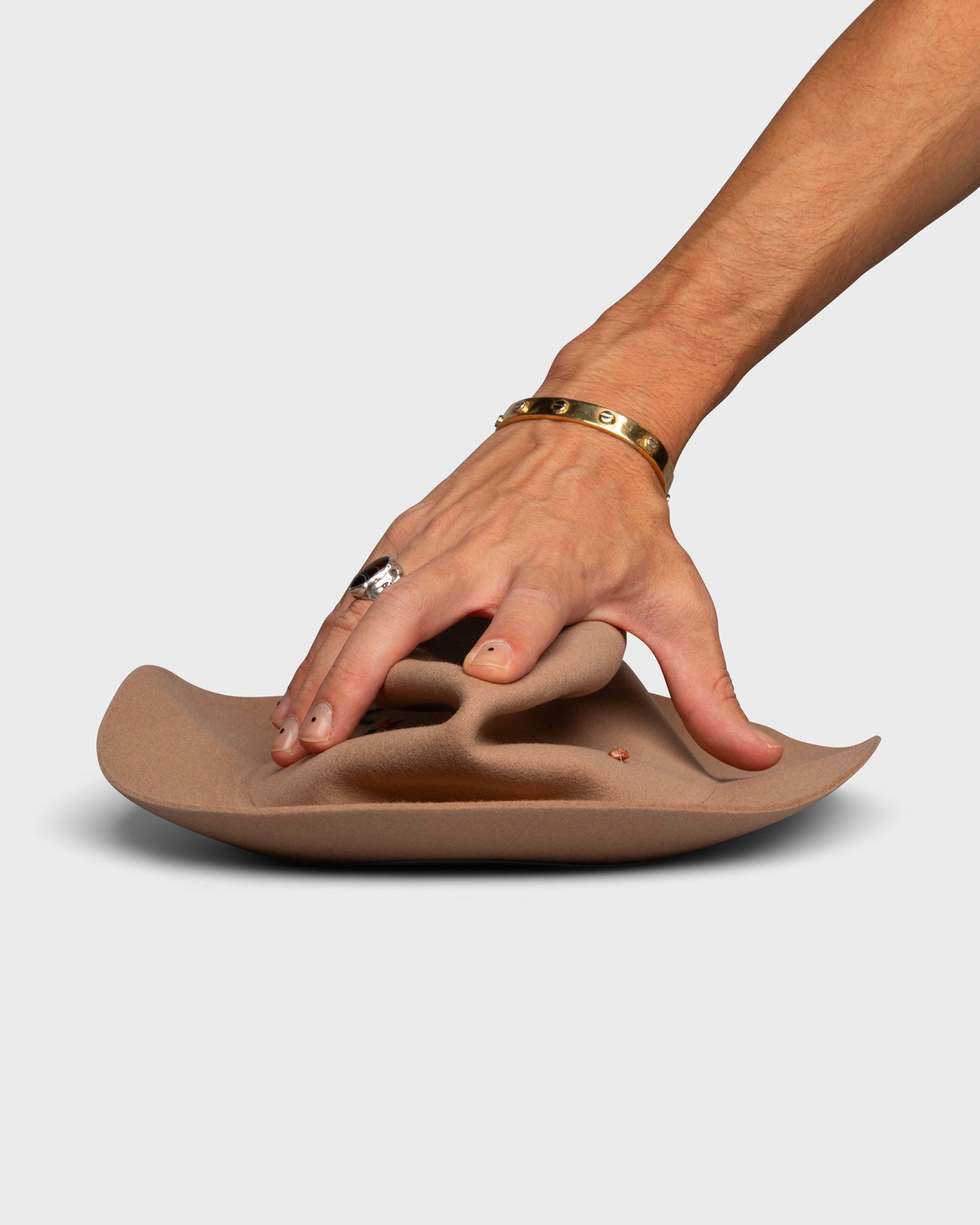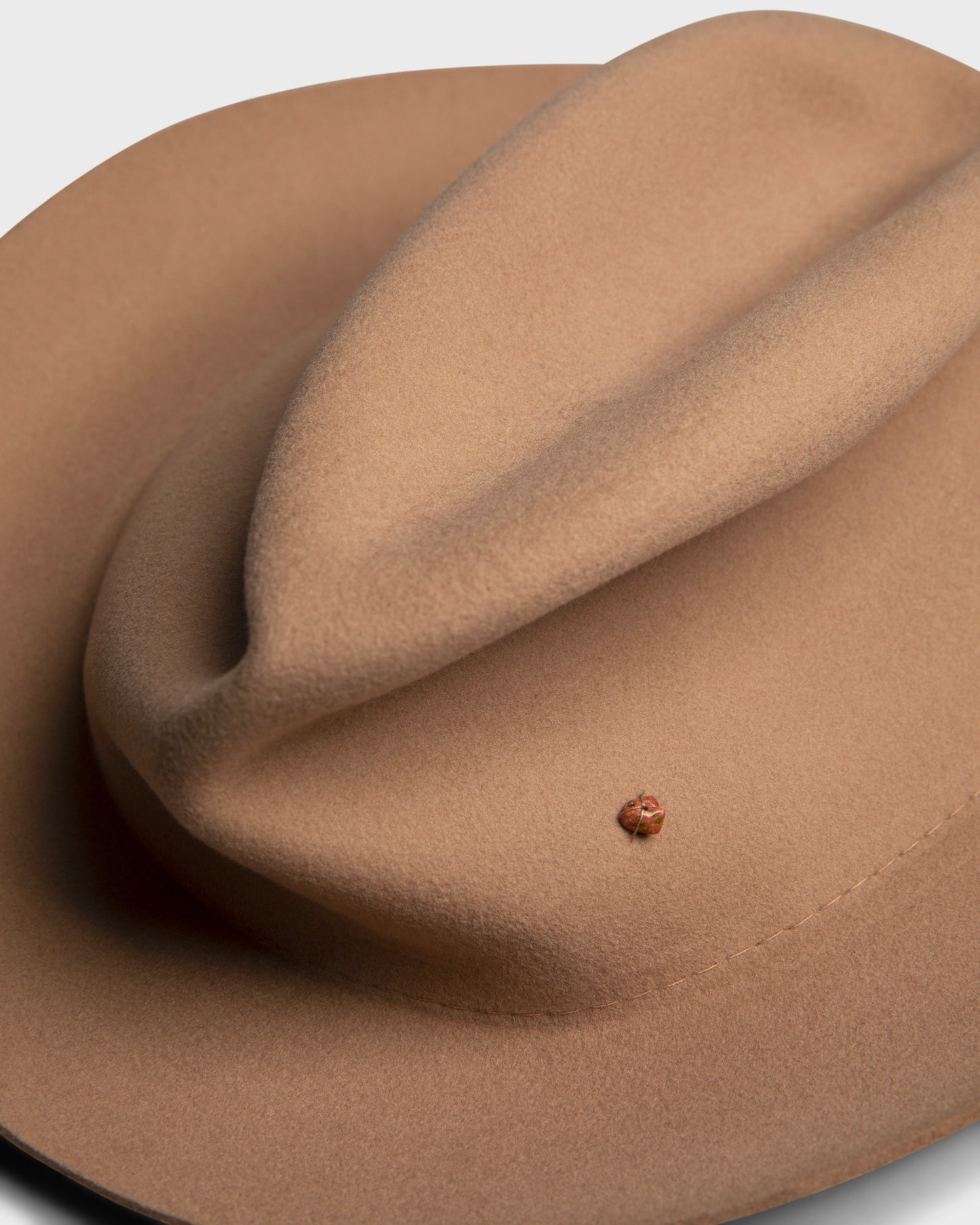 HOBO is our iconic travel hat, designed to move effortlessly with you. Crafted in felt and finished in a soft sand color, it features a clean silhouette with a 5 cm brim, striking the perfect balance between practicality and timeless style.