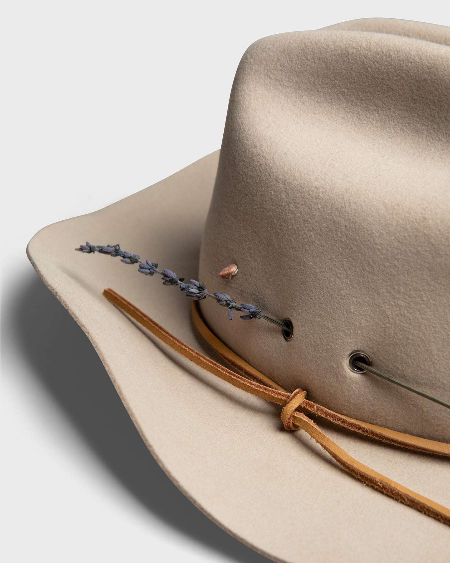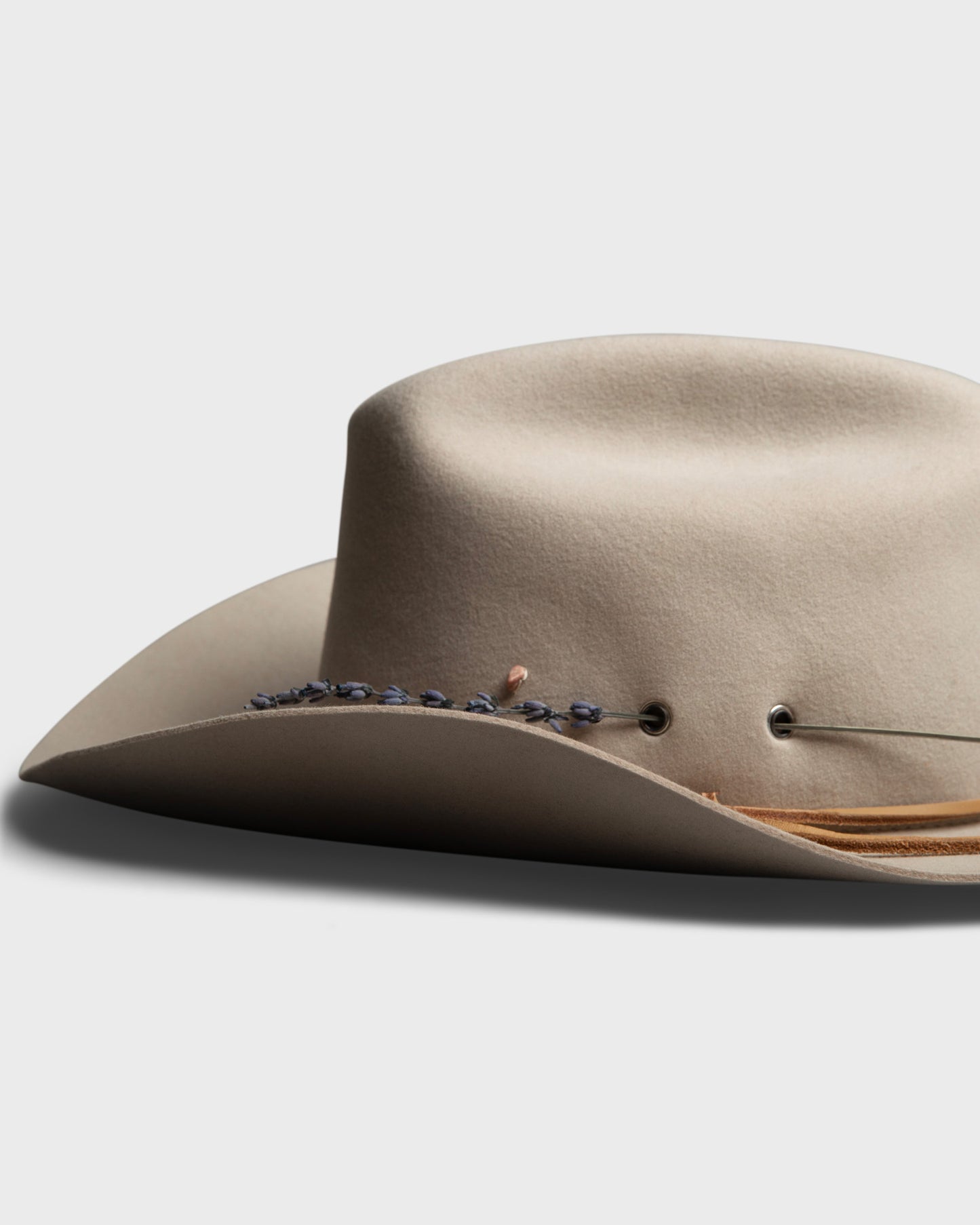 Hopper Silverbelly is a minimal western hat defined by a strong silhouette and thoughtful details. Crafted with a large curved brim, it balances structure and elegance, offering a timeless interpretation of western headwear.