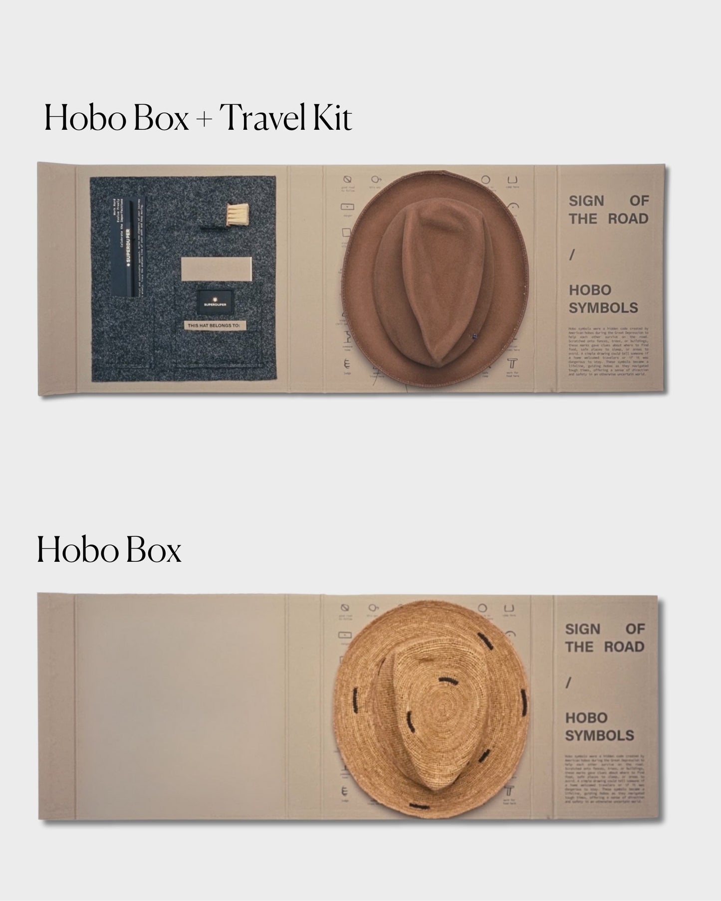 A compact box designed for those who move with purpose. The pencil, created in collaboration with Perpetua, is made of 80% recycled graphite with no added coatings. The notebook, unlined and pocket-sized, is ready for your travel notes. The brush is crafted to keep your hat clean and perfectly cared for, wherever you go.