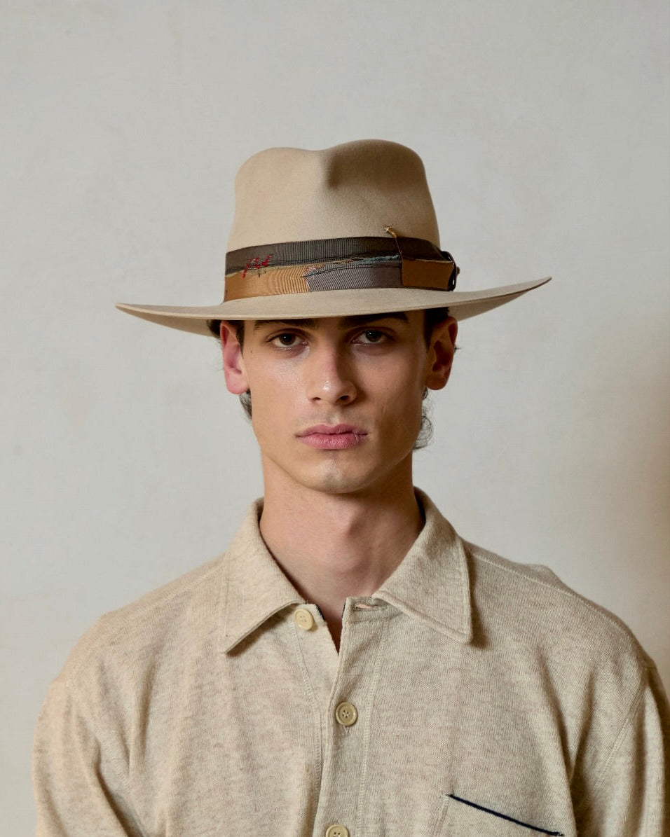 Hand-shaped after initial blocking, the DESTINO style is crafted from a rabbit felt blend.
