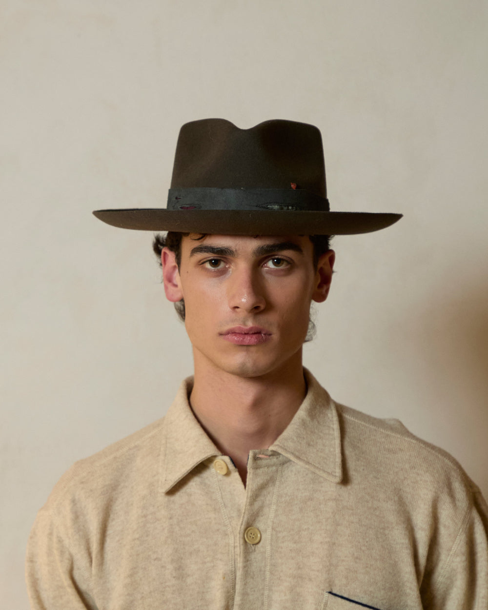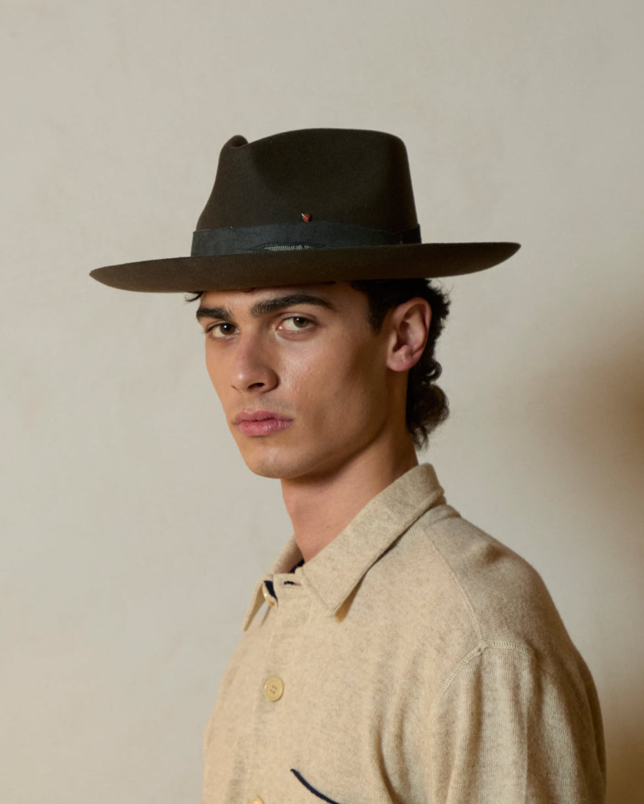 Our masterpiece hat seamlessly blends timeless elegance with modern style. The crown, with its strong teardrop silhouette, strikes the perfect balance of proportions. harmonized by a generously sized.