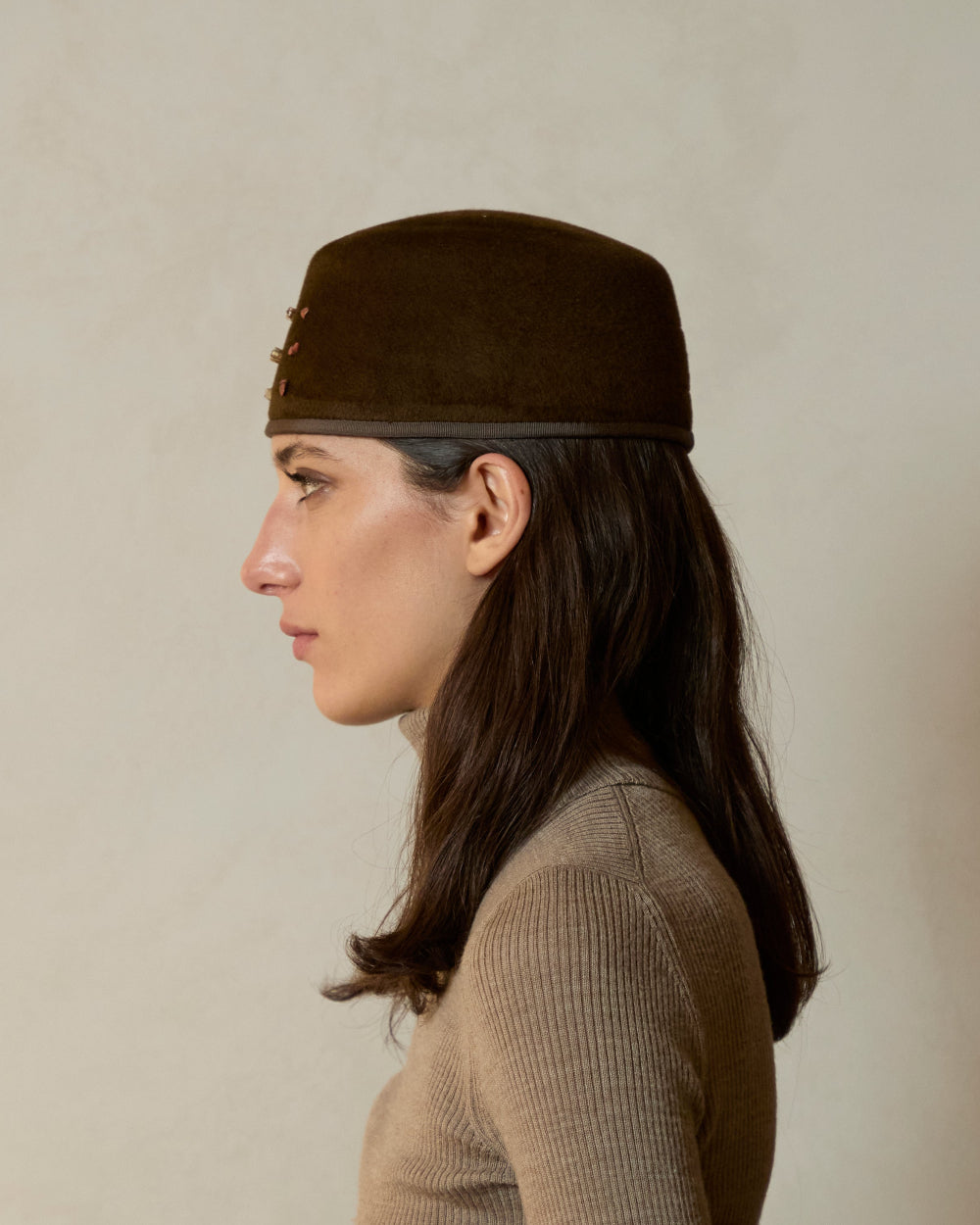 Inspired by the Fez hat, Medina is a new addition to the "Ride the Tiger" collection. Made from premium wool, this piece offers a comfortable touch. It is finished with grosgrain in an "à la française" style for an elegant and distinctive look.