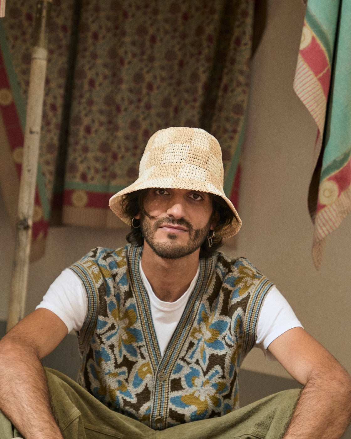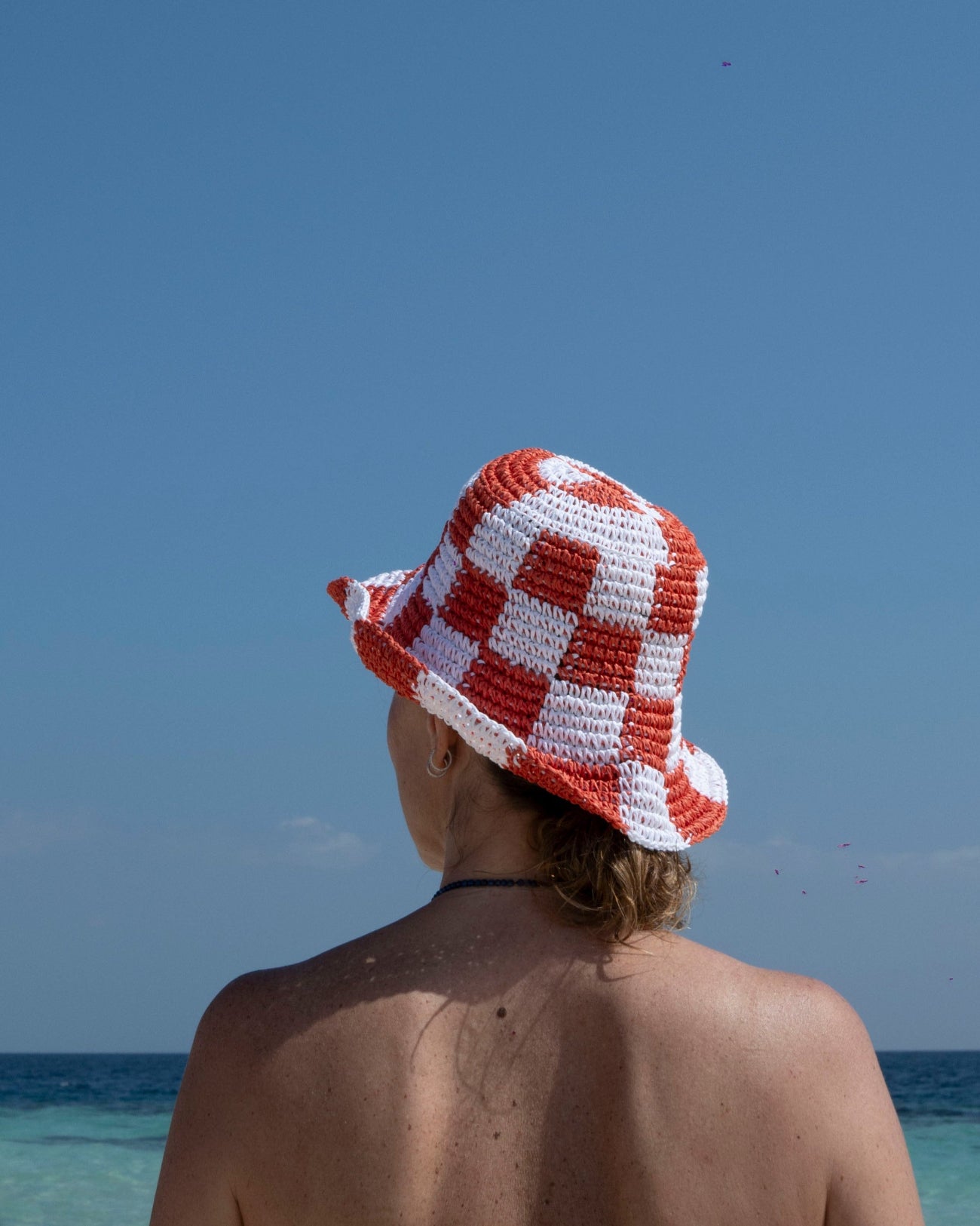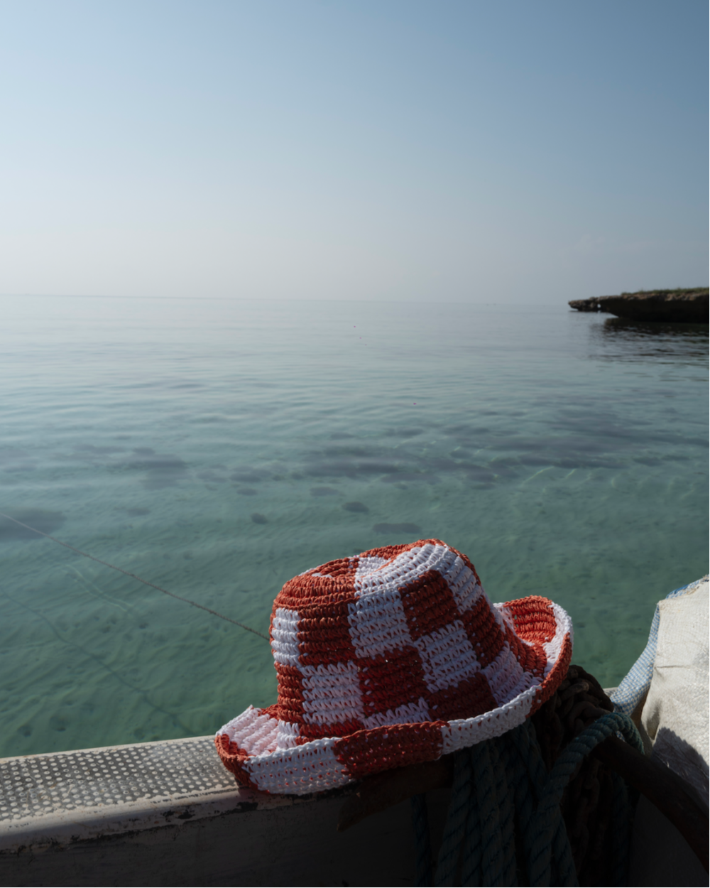 Shack takes its name from the iconic late '50s surf culture scene, where the humble shack provided refuge for surfers awaiting the perfect wave when the sea lay flat. This version is crafted using a refined racing crochet technique in lightweight paper straw, offering both breathability and structure. Its two-tone finish in white and beige adds a touch of subtle contrast, perfect for sun-drenched days by the coast or in the city.