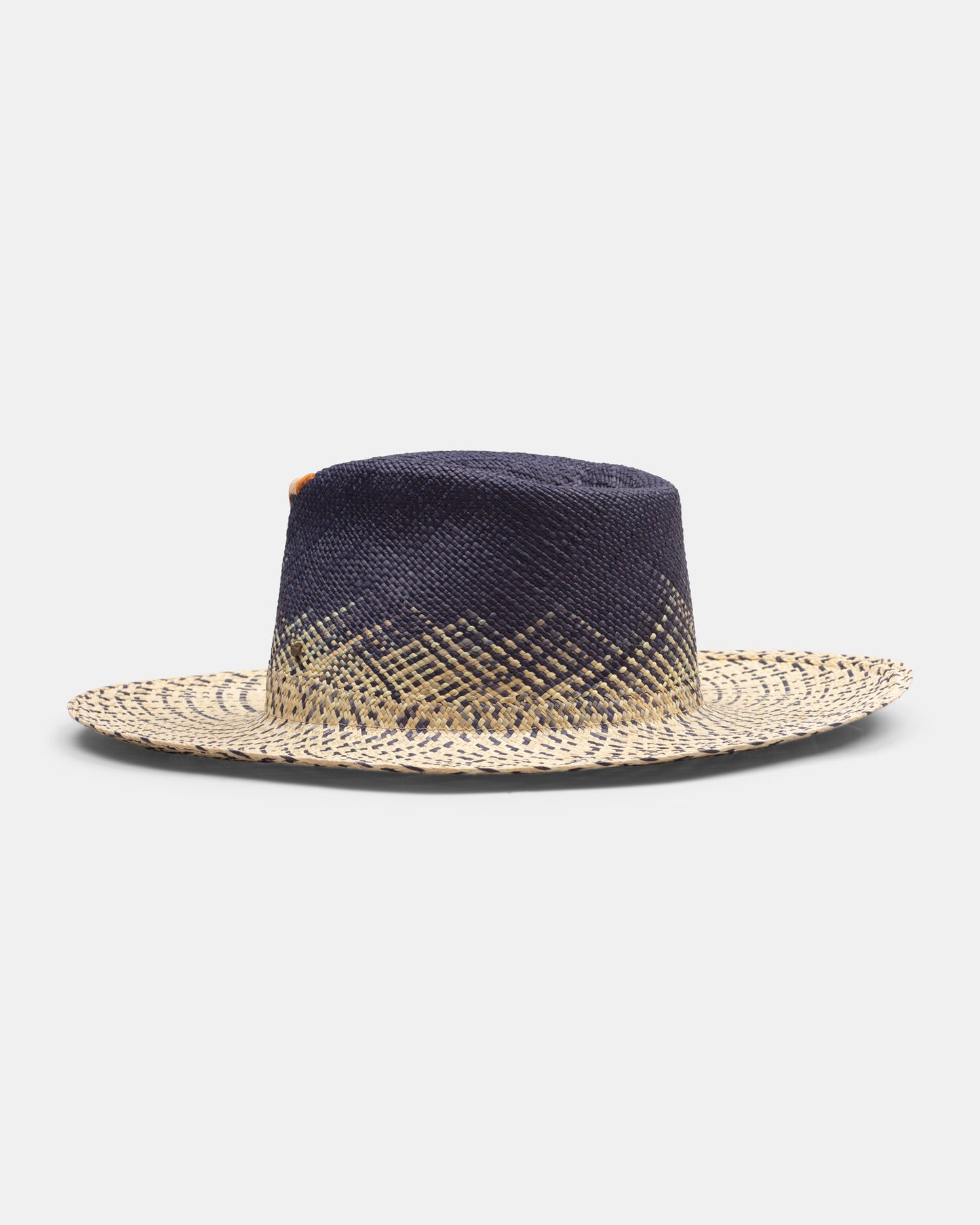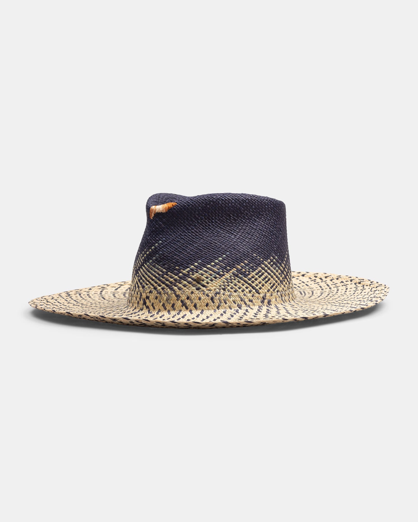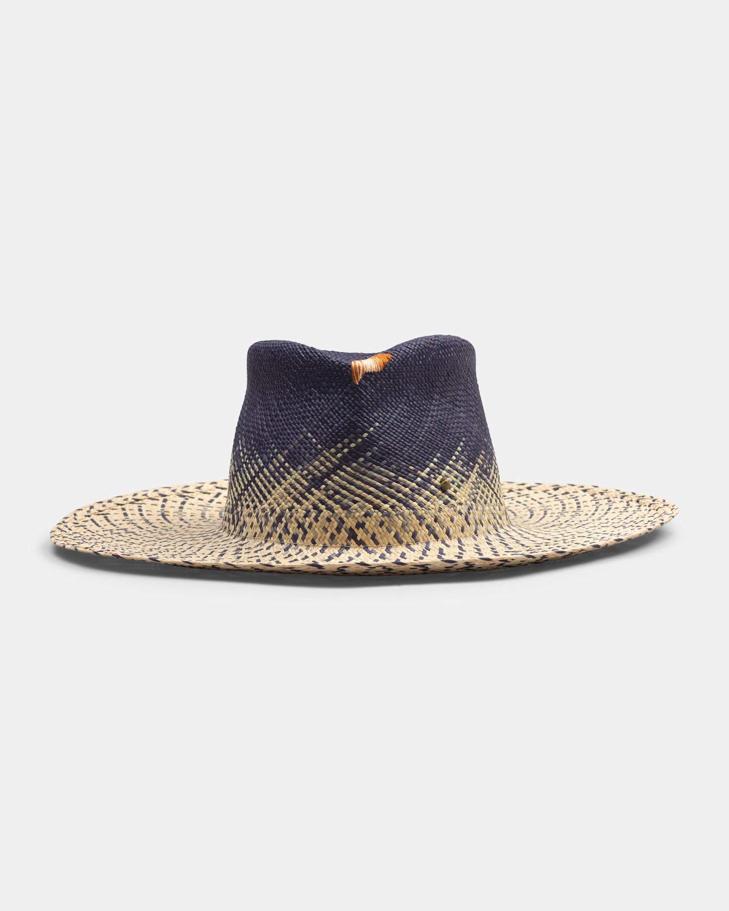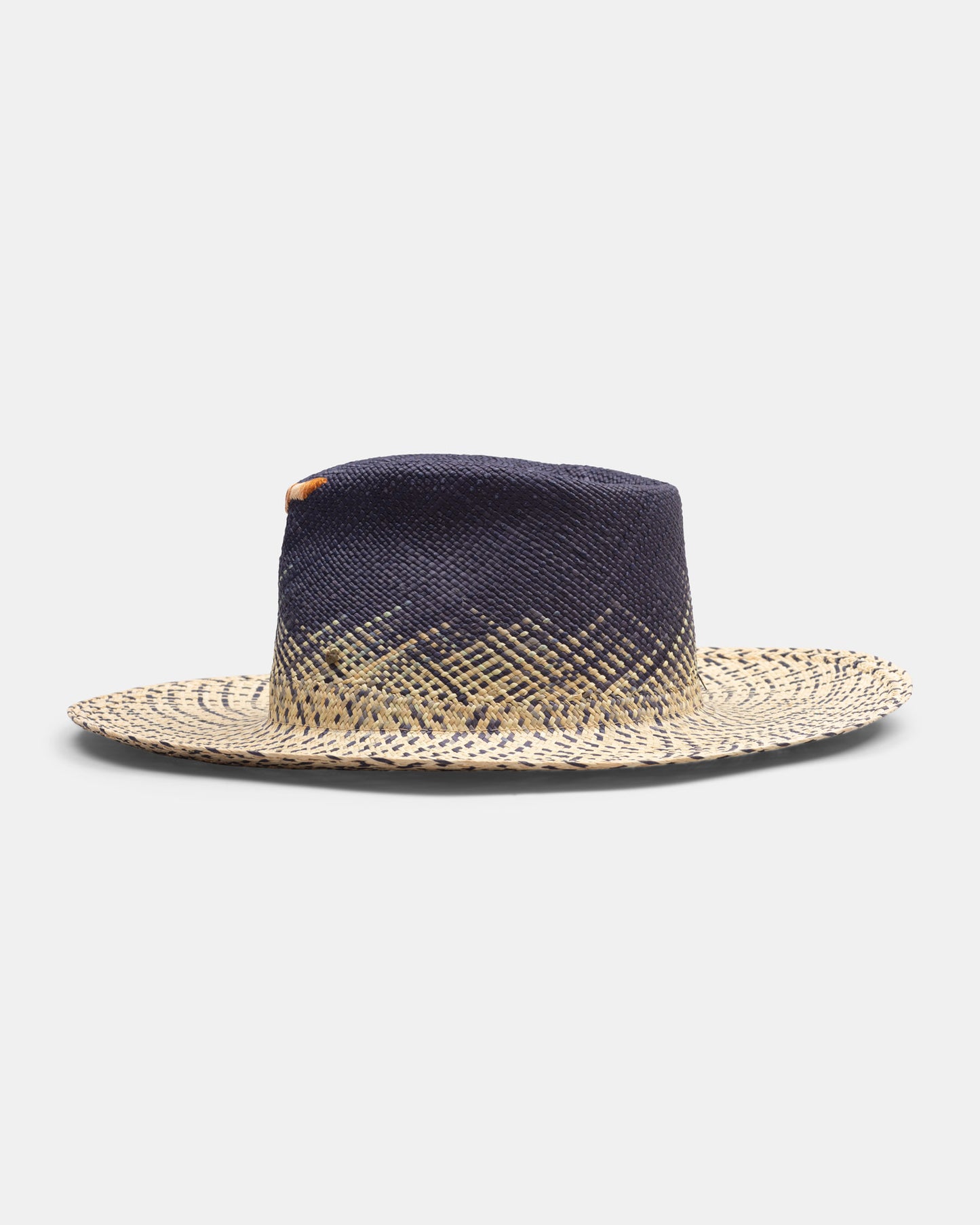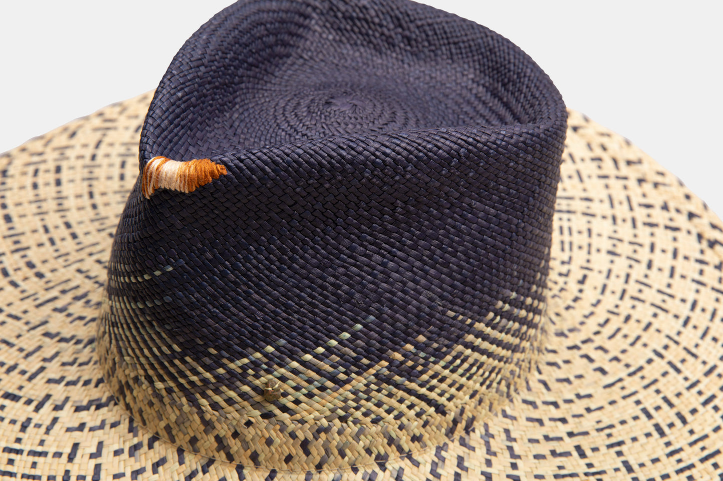 Born from the endless research of uniqueness of the SUPERDUPER design team, Dedalo is a strong but sharp diamond crown with a flat brim. The material used is premium panama straw with a soft and comfortable touch, featured by a blu gradient effect. On the top of the crown, a colorful stitching embellishment adorn the hat.