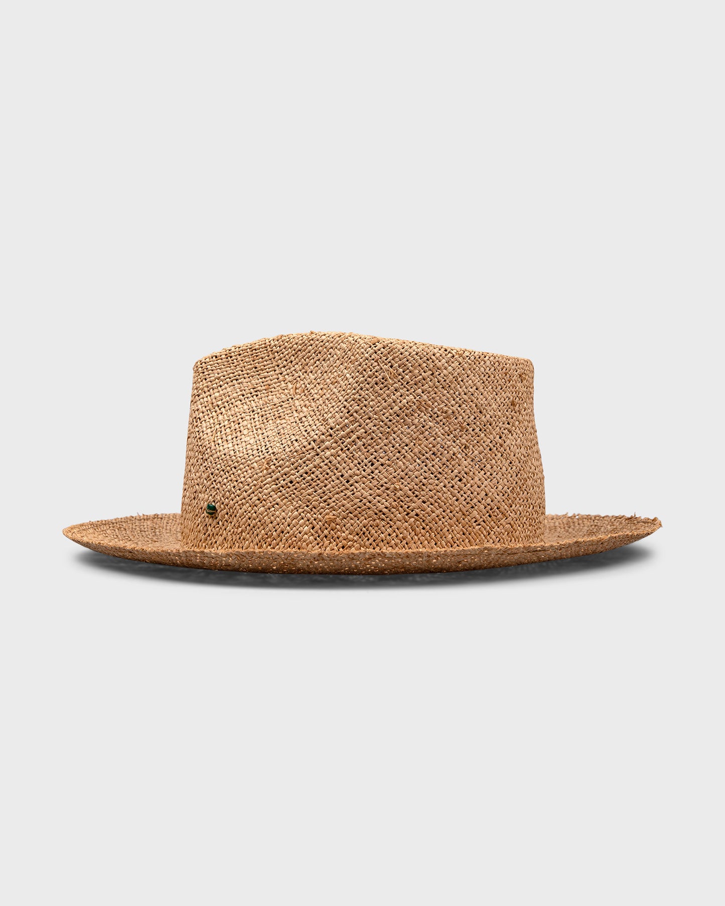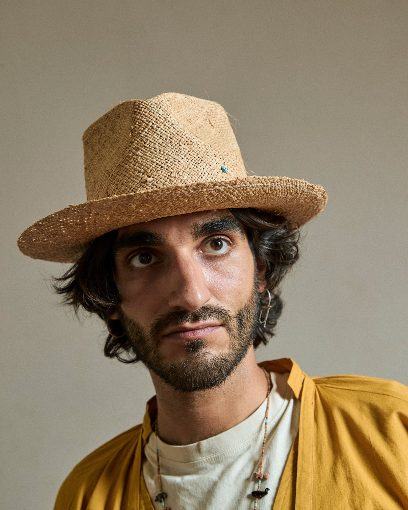 Drop, a contemporary reinterpretation of the teardrop crown shape within our timeless carryovers. Crafted from lightweight and breathable raffia straw, Drop strikes a perfect balance between structure and ease. The raw edge of the brim enhances its organic feel, making it a versatile option for everyday summer wear.