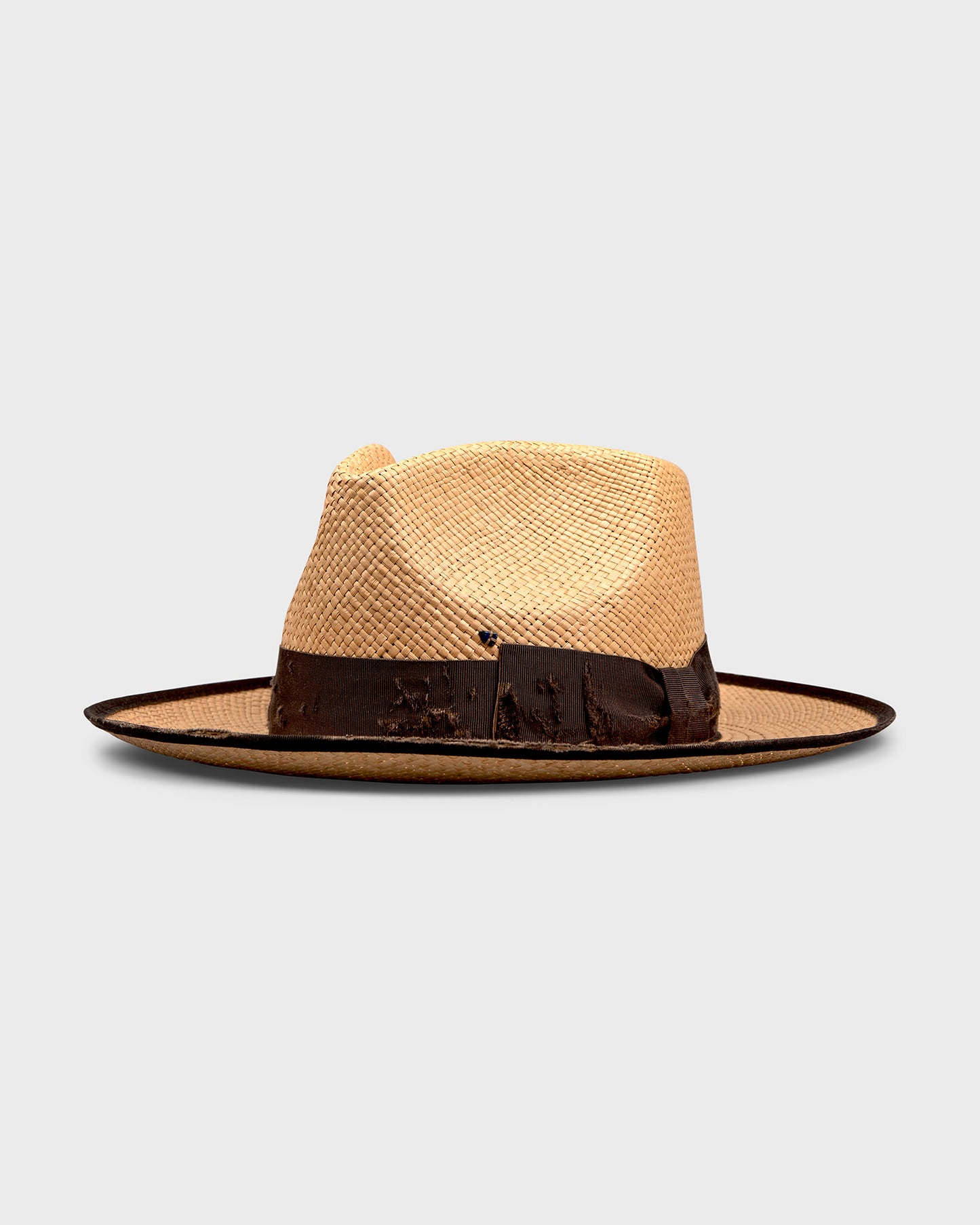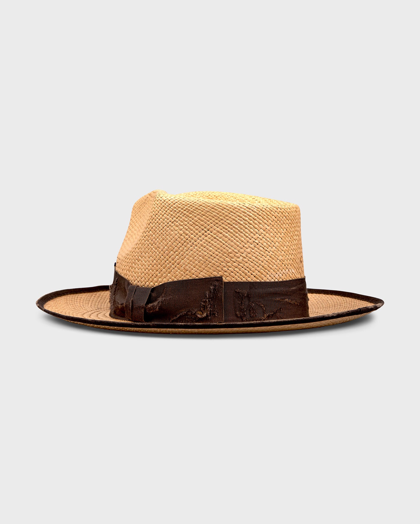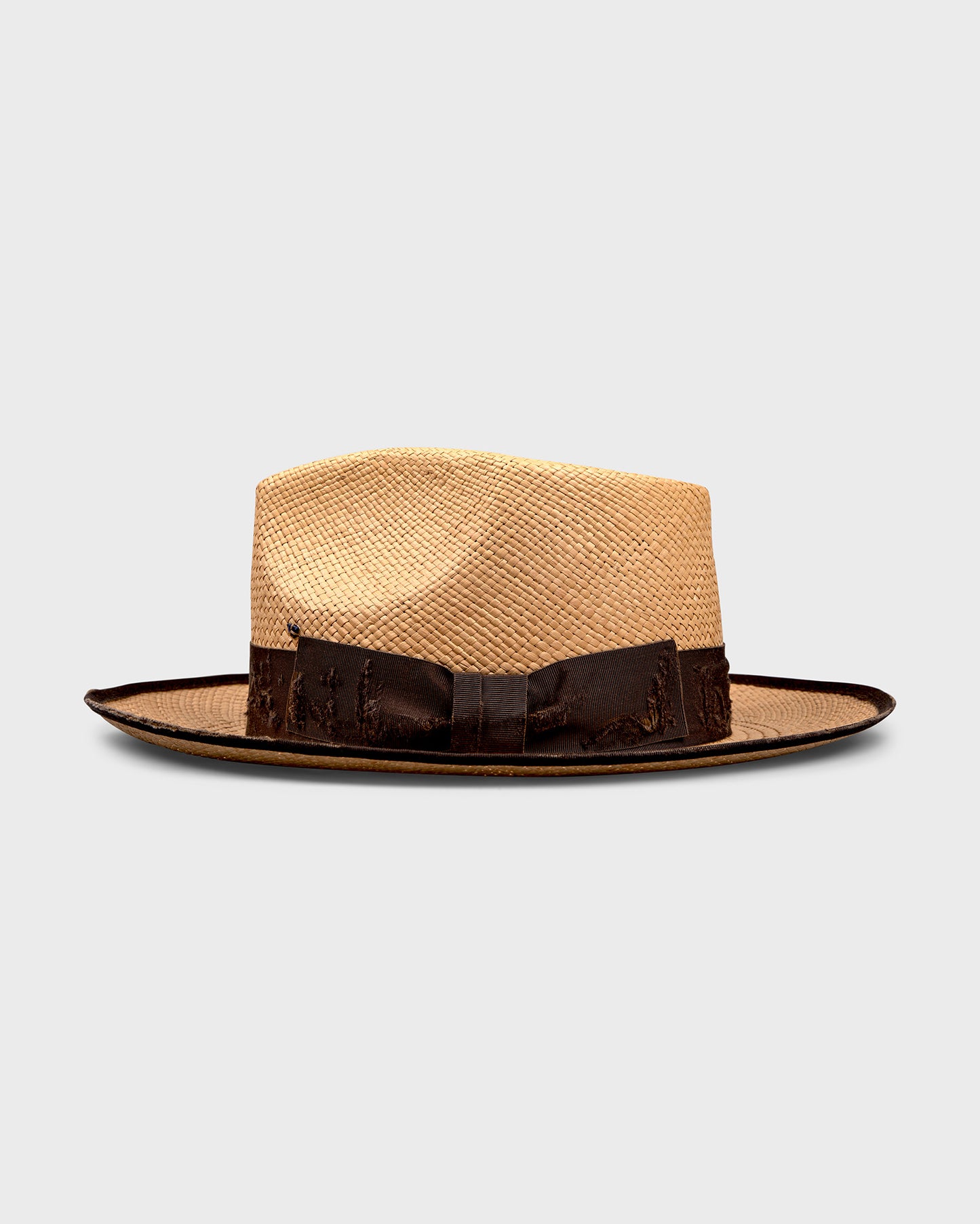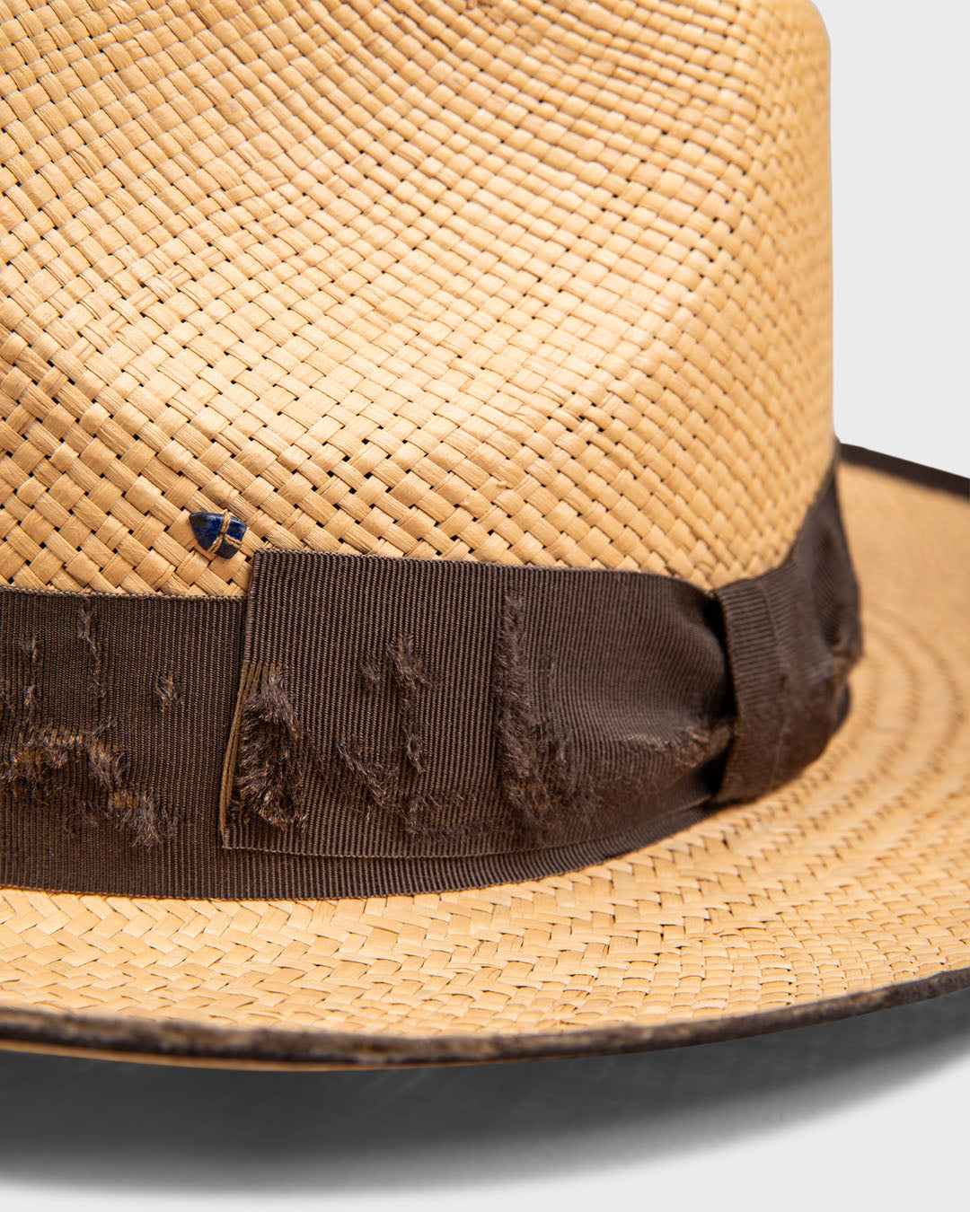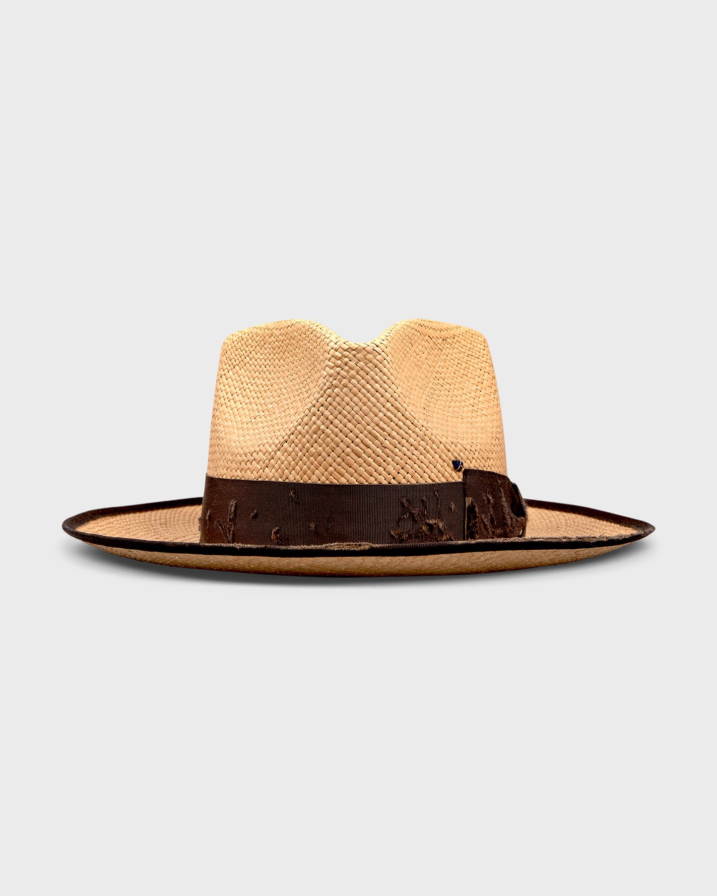 The worn finish enhances the hat’s lived-in look, making each piece subtly unique — an expression of craftsmanship and individuality.