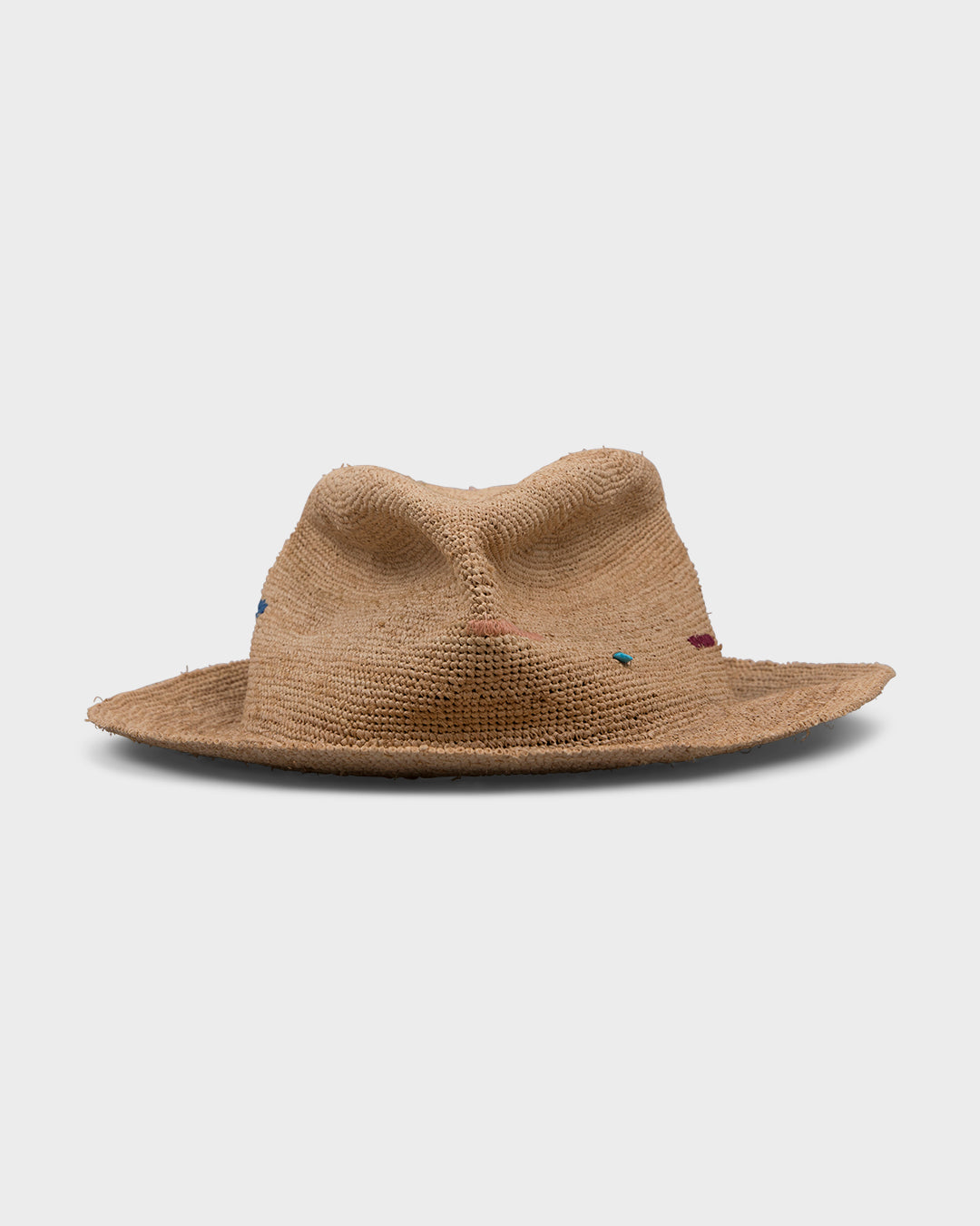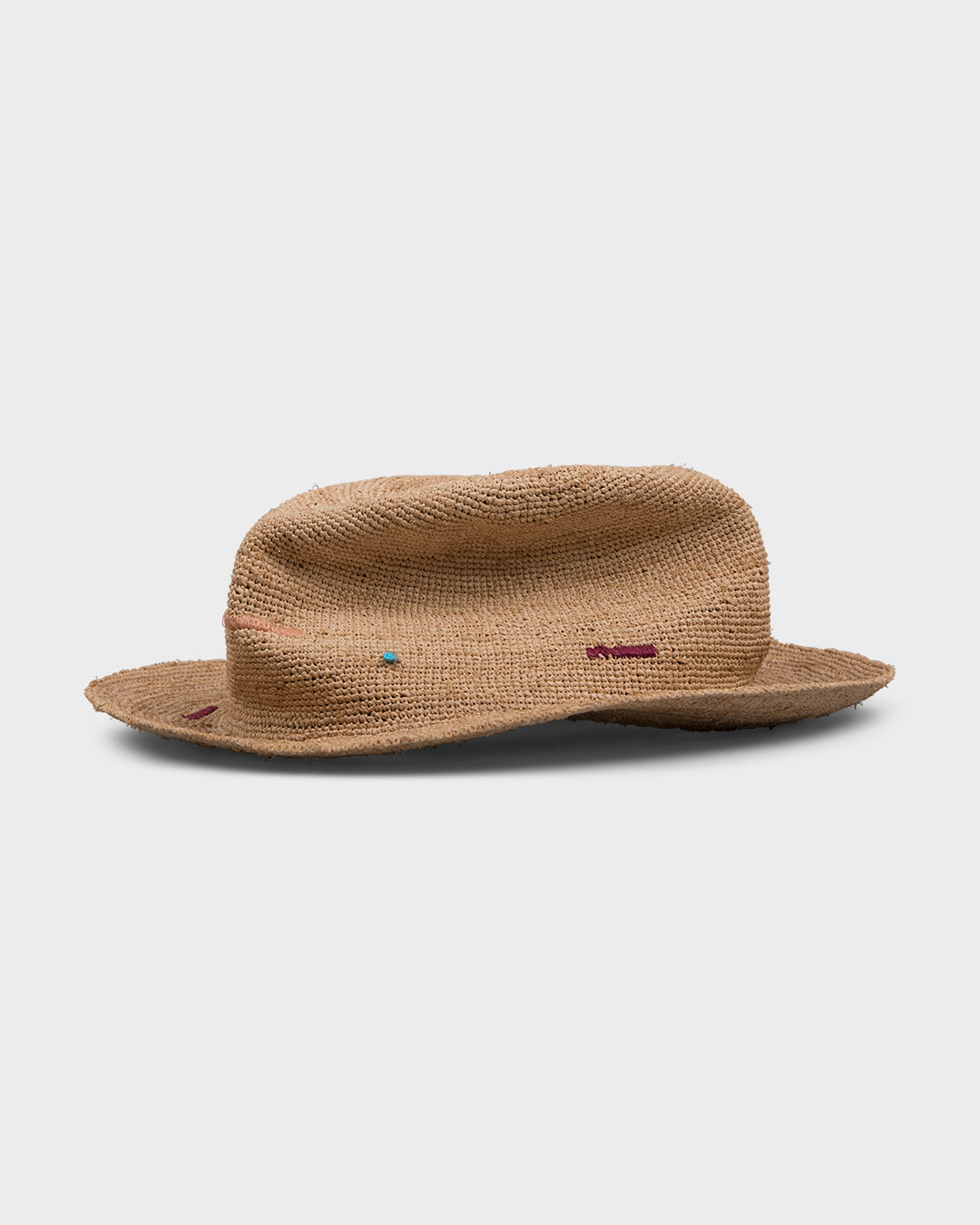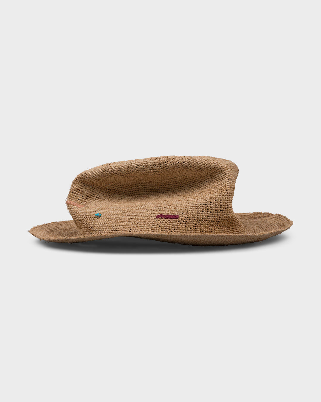 Introducing our iconic Hobo Hat reimagined in a stunning straw version, retaining its signature crumpled, wrinkled, and worn charm.