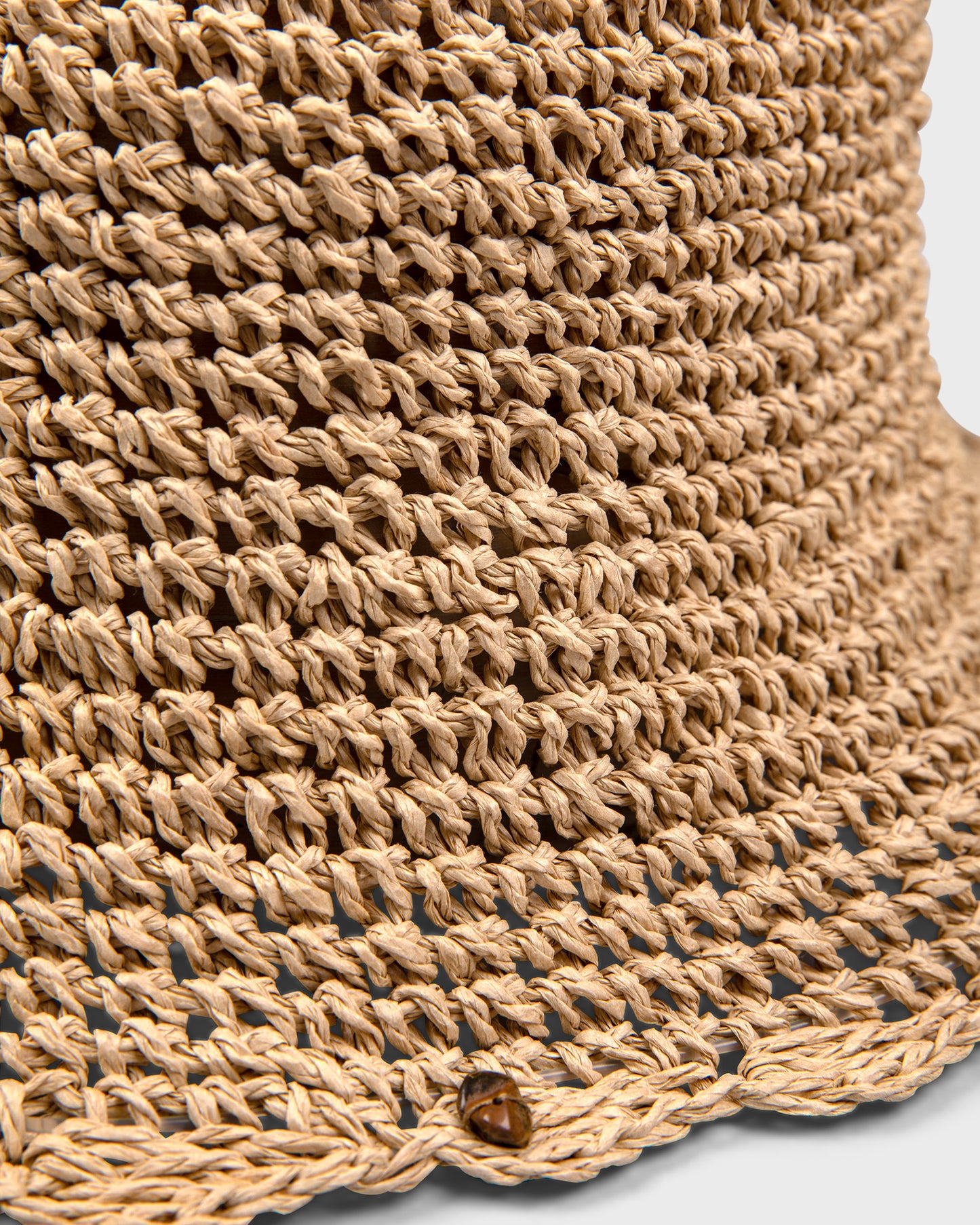 Shack takes its name from the iconic late '50s surf culture scene, where the humble shack provided refuge for surfers awaiting the perfect wave when the sea lay flat. Crafted using a wide crochet technique in durable paper straw, this hat offers both breathability and structure — your natural shield against the sun’s rays. A tribute to simplicity, freedom, and sun-drenched days.