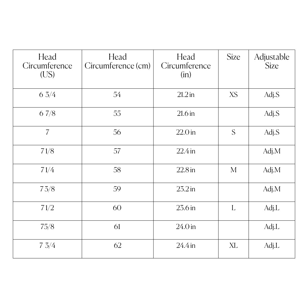 Choosing the right hat size is essential for comfort and style. Measure your head circumference using a flexible measuring tape, positioning it just above your eyebrows and ears. Refer to the size chart next to this guide to match your measurement with the corresponding hat size.