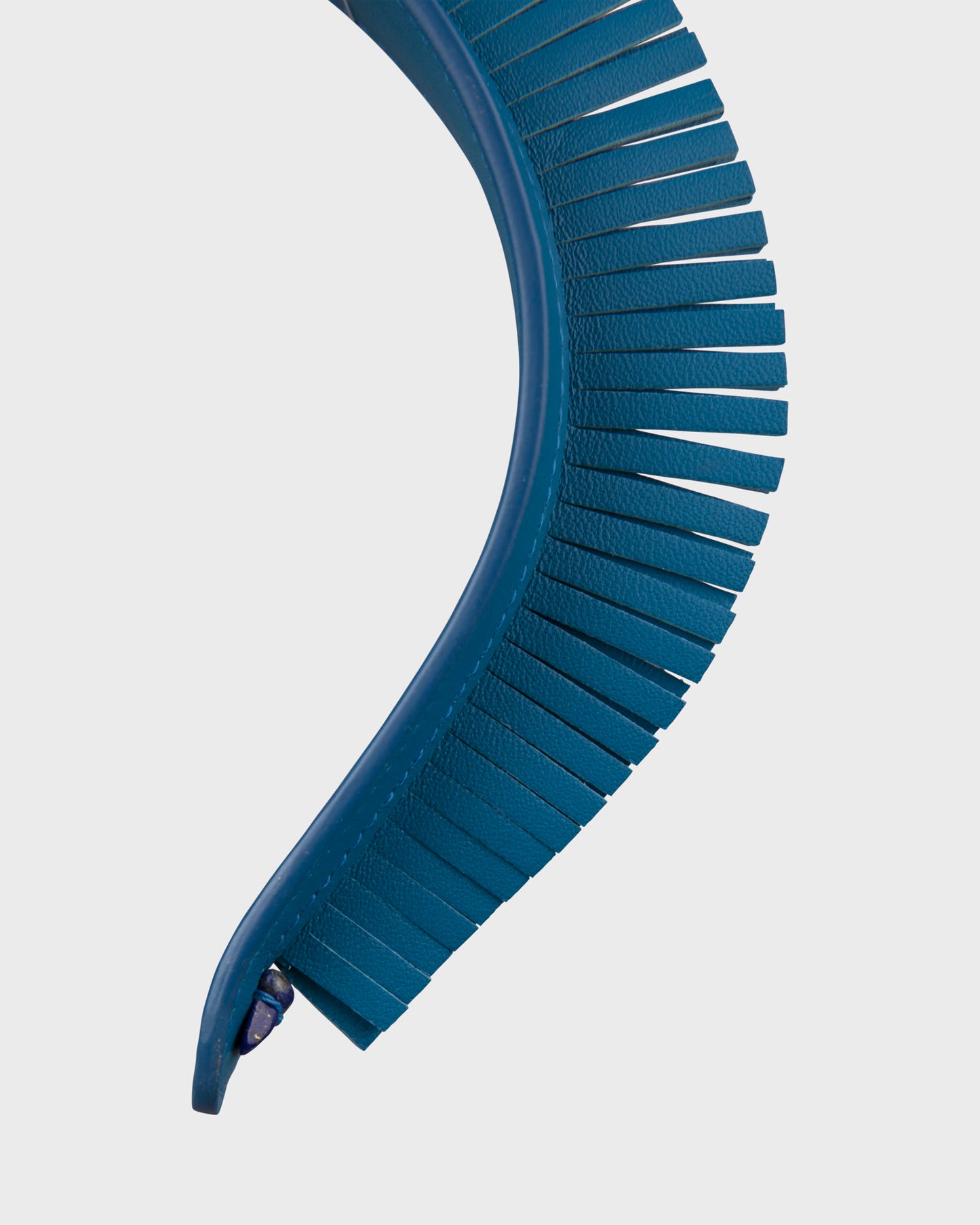 This particular Aureola BLU features a Lapis Lazuli stone. With its deep blue and gold flecks, this gem is known as the "stone of wisdom," offering intellectual and spiritual stimulation. It instills mental clarity and intuitive power, helping the wearer connect with their inner truth. Lapis Lazuli is also associated with self-awareness and enlightenment.