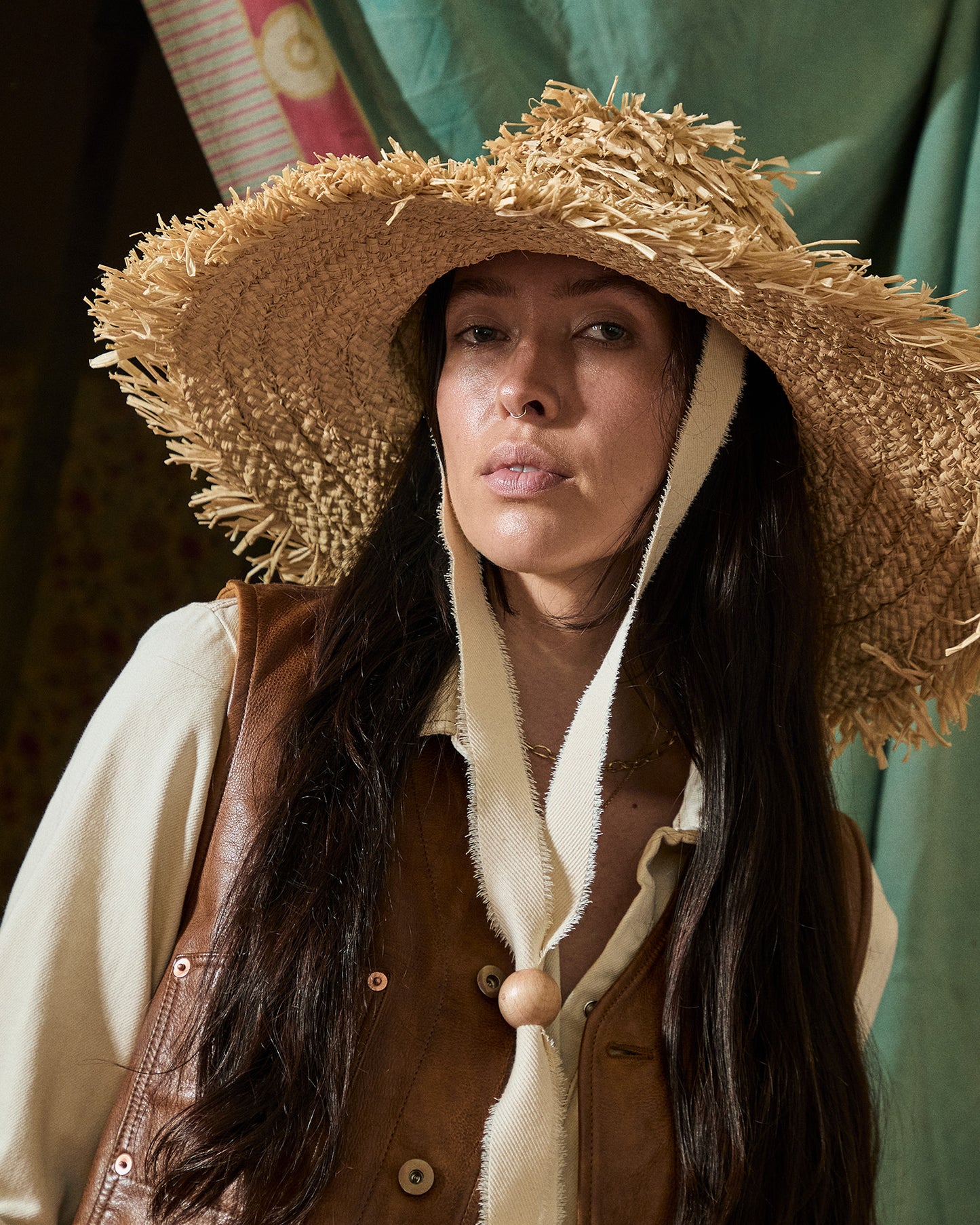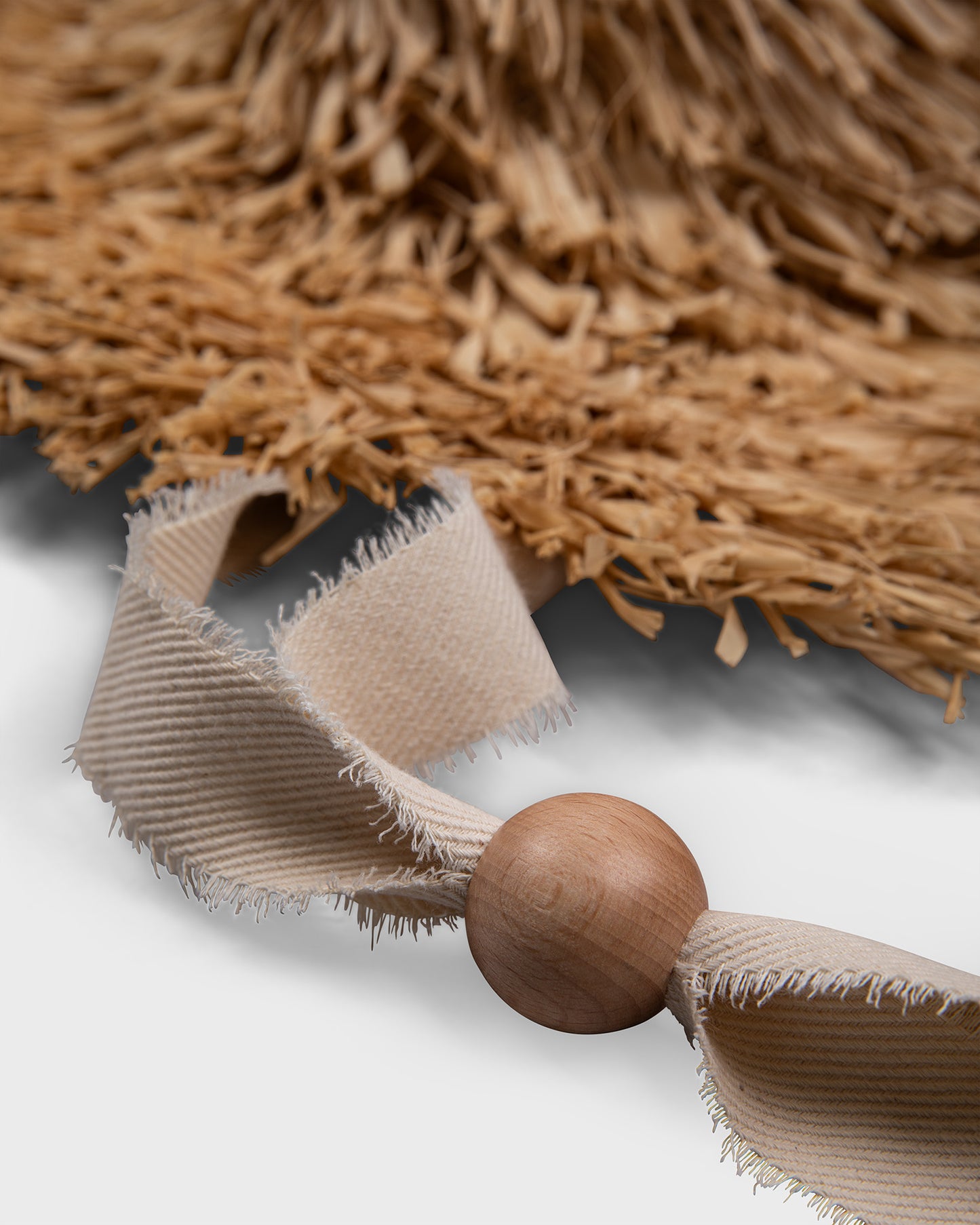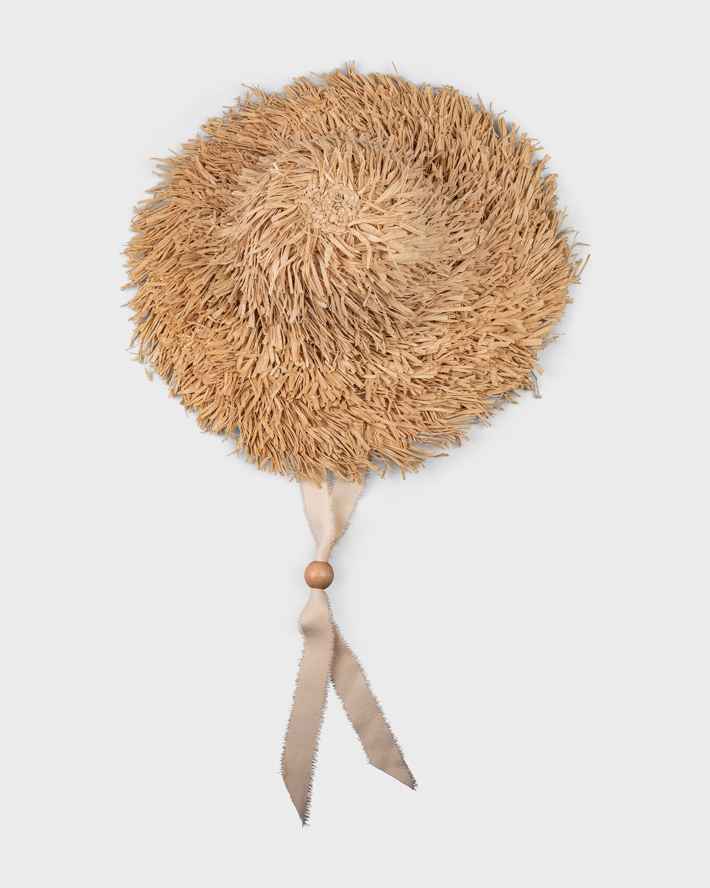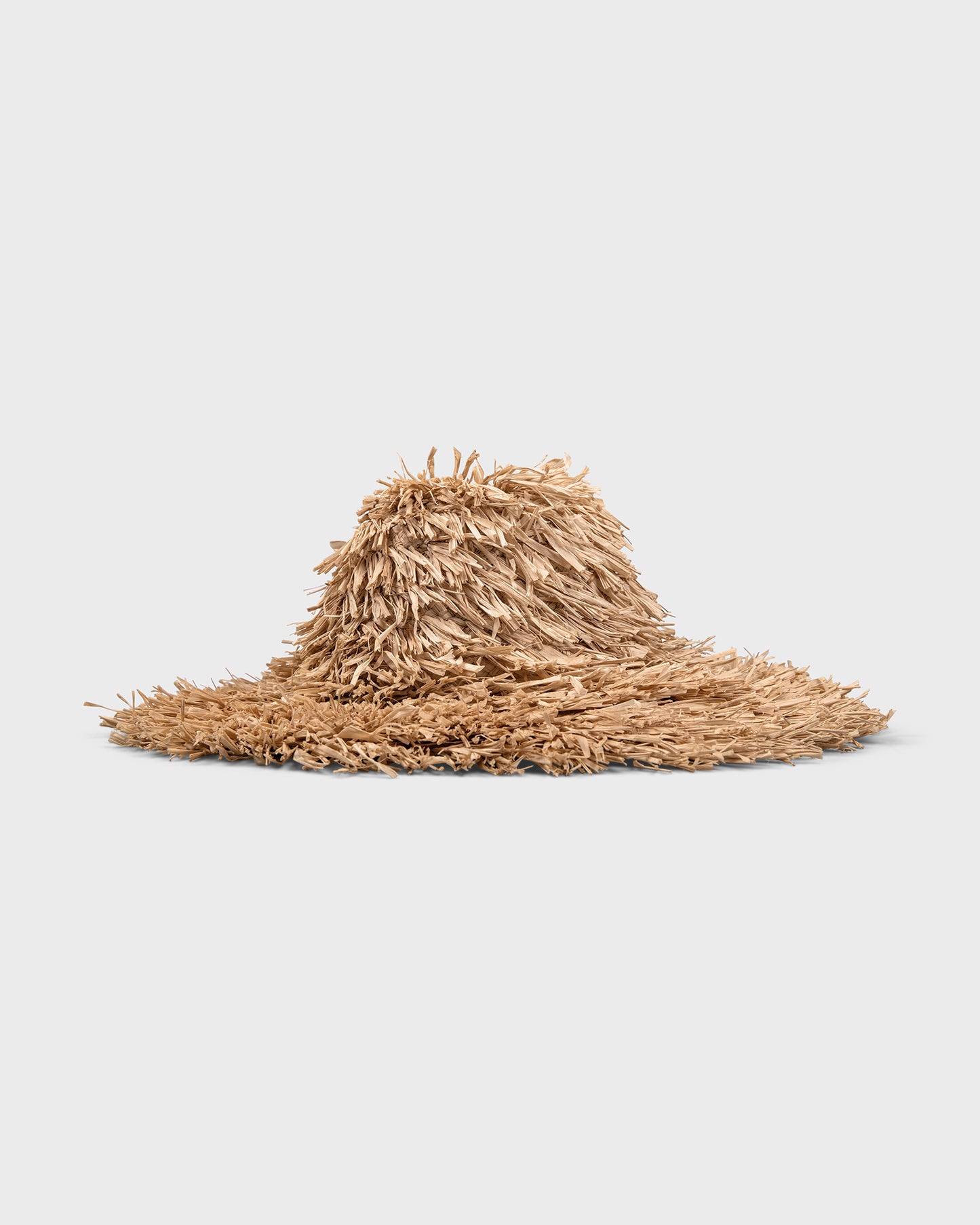 Shack takes its name from the iconic late '50s surf culture scene, where the humble shack provided refuge for surfers awaiting the perfect wave when the sea lay flat. This unique edition is crafted from Rafia Fringe, featuring a playful and raw-edged finish that adds natural movement and texture. Its lightweight feel and fringed silhouette make it the perfect companion for sun-soaked days with an effortless bohemian soul. The brim lenght is around 11,5cm