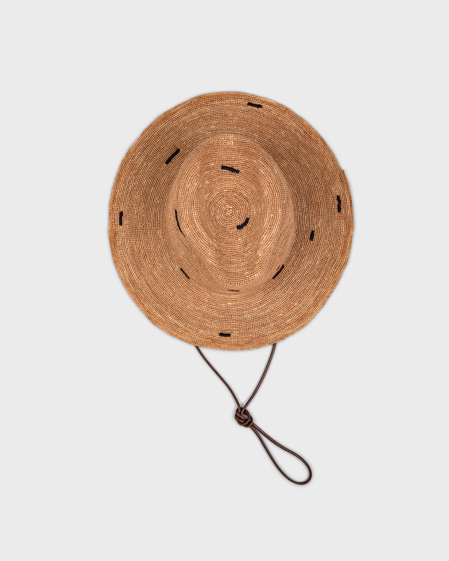 WANDERMATE is a broader Western-inspired hat, designed for those with a taste for the open road. Its distinctive silhouette is completed by a soft leather lace wrapped around the crown—adding rustic character while enhancing fit and comfort.