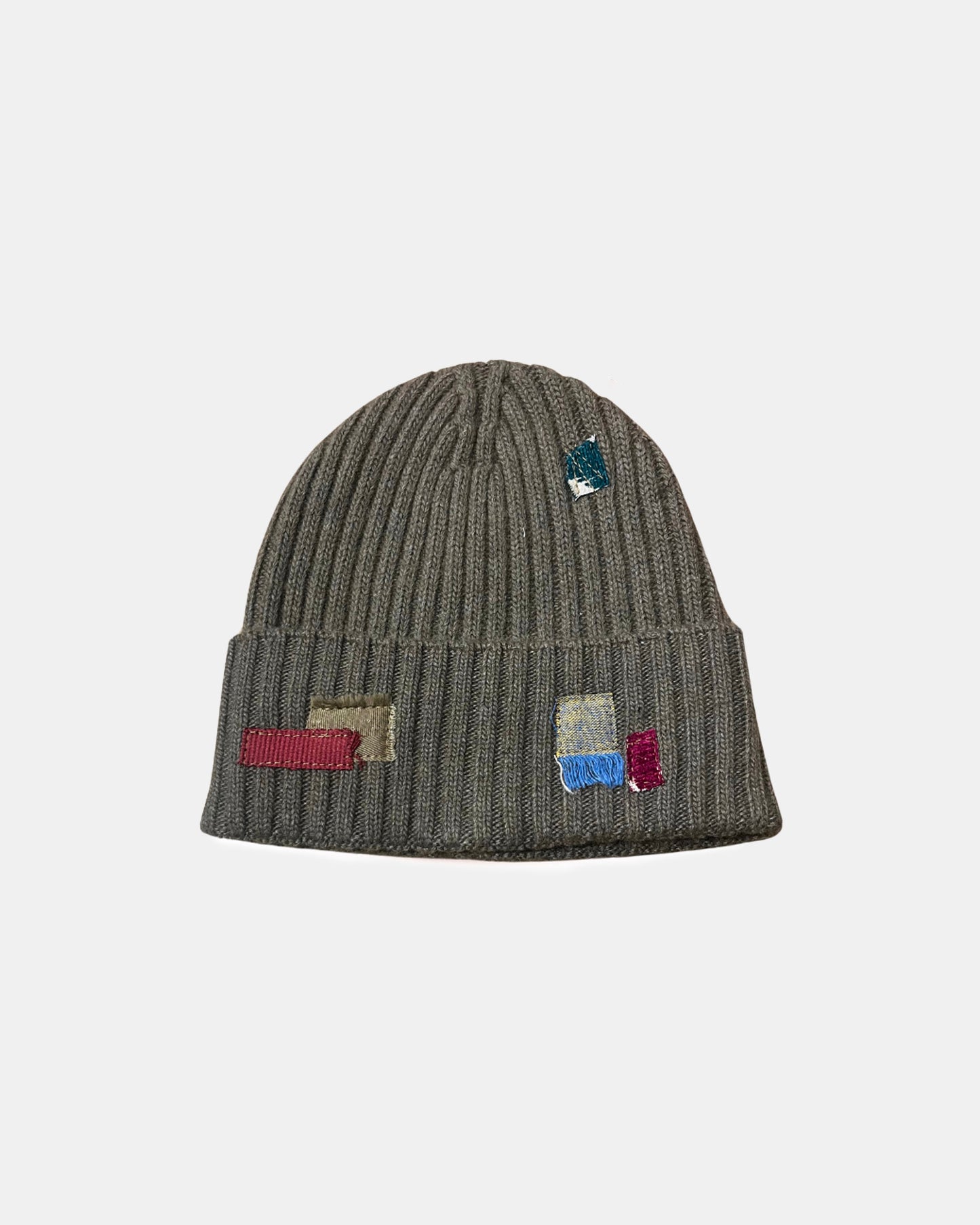 A traditional Fisherman beanie featuring an embroidered repair stitch detail all over, adding a unique, handcrafted touch.